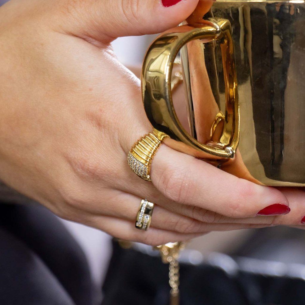 14 karátos arannyal bevont gyűrű, cirkónium szalagokkal díszítve 4000465