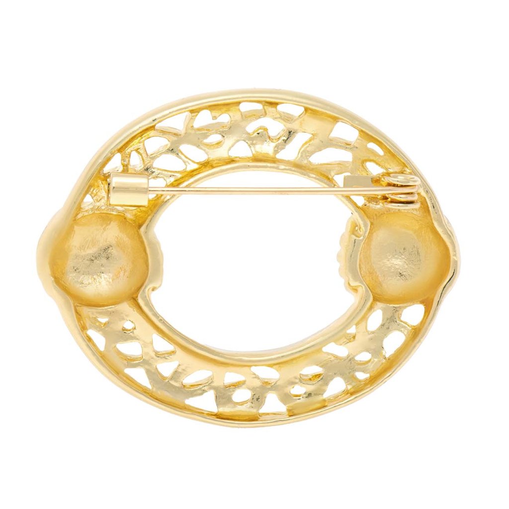 Arany színű, plasztikus díszítésű ovális bross 9002049