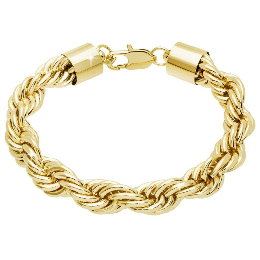 Fokozza stílusát ezzel a lenyűgöző aranyozott karkötővel! Az aranyozott tömör 14k karkötő ródiummal bevont fémből készült és tökéletesre polírozott. Ez a lenyűgöző karkötő extra fényes csillogása és arany színe miatt bármilyen öltözékhez illik. Gyönyörű összefonódó motívummal rendelkezik, és tökéletes azok számára, akik valami különlegeset és egyedit szeretnének hozzáadni a megjelenésükhöz. A karkötő karabineres csattal van ellátva.