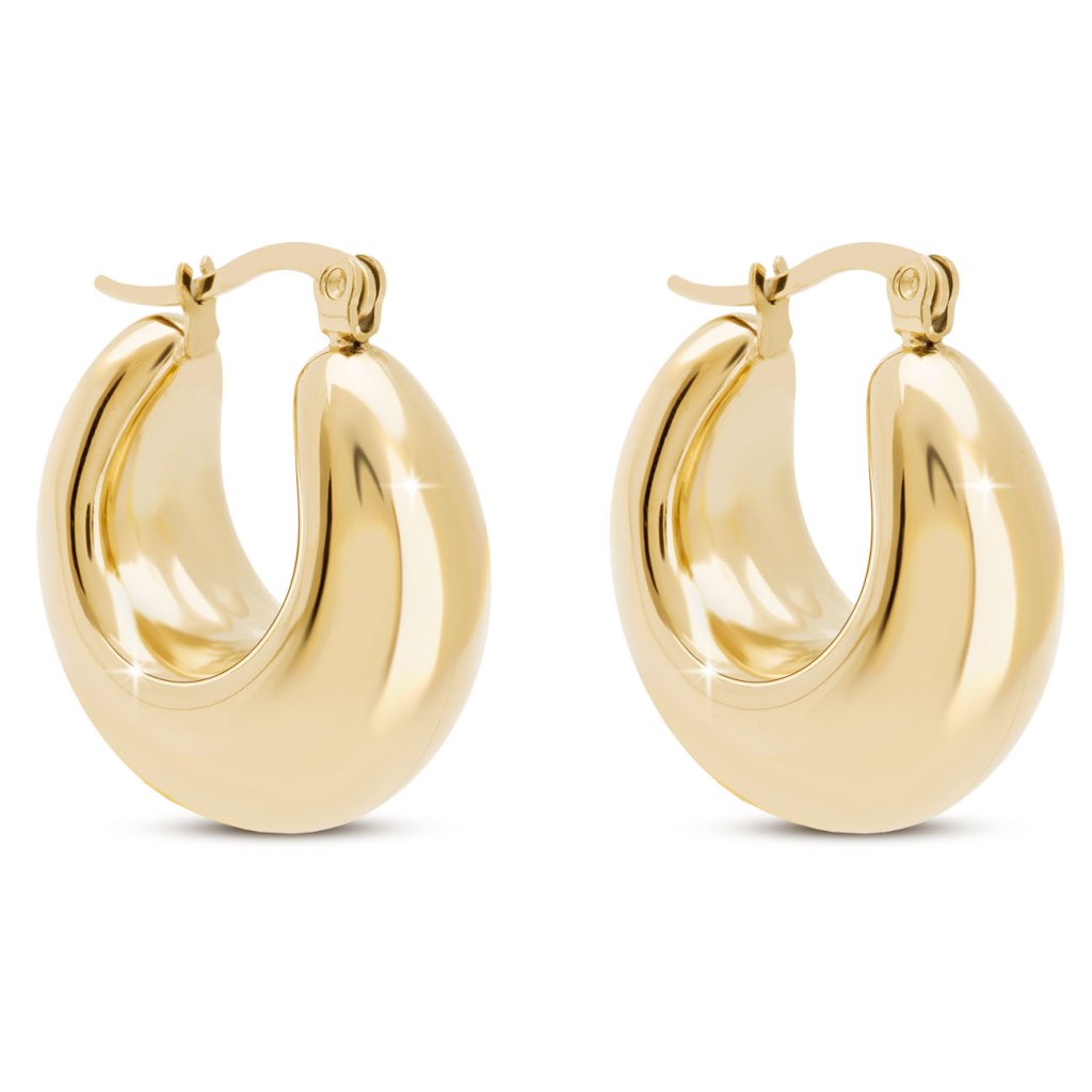 Kerek aranyozott 14k sebészeti acél fülbevaló. Jellegzetesebb, szélesebb, klasszikus formájú körök.