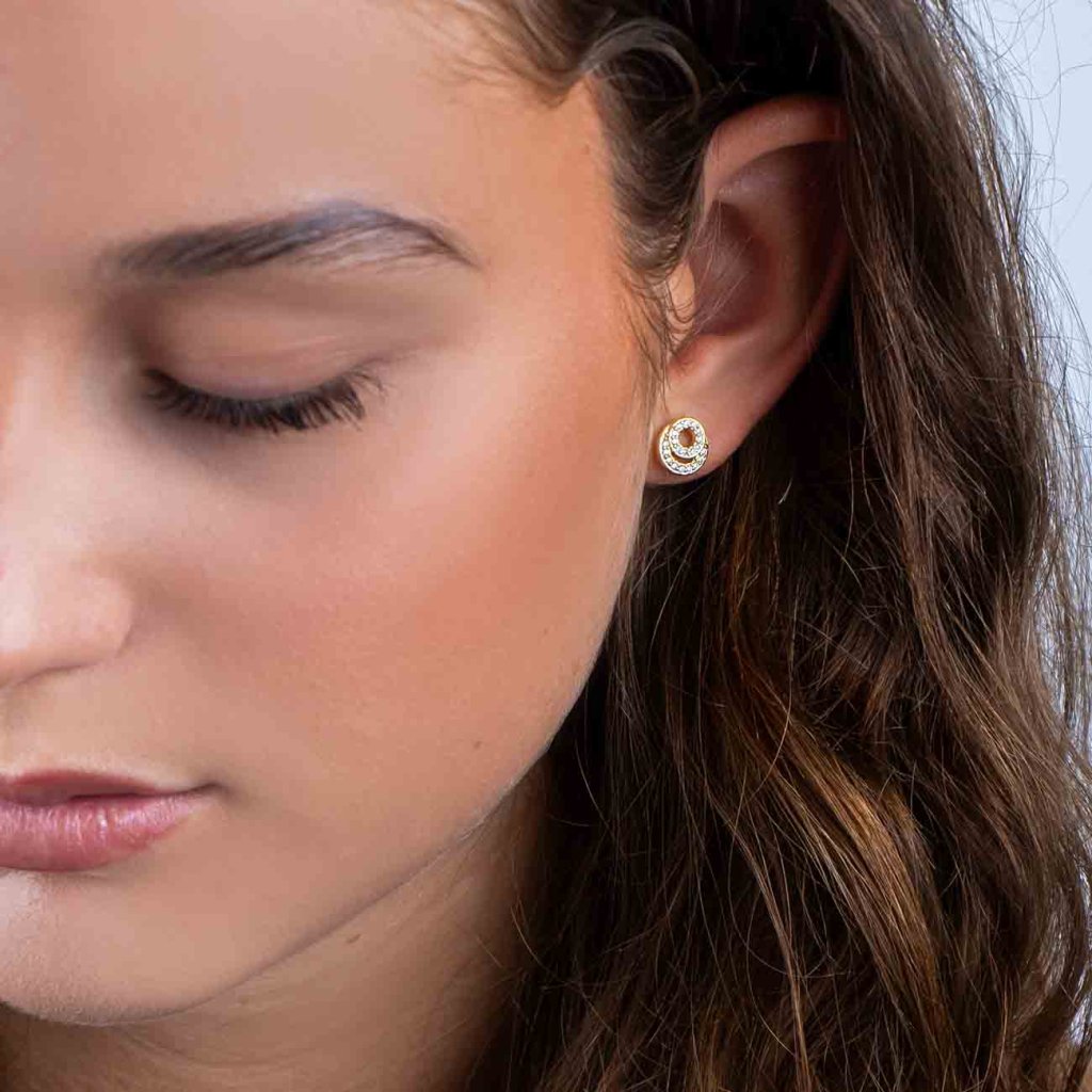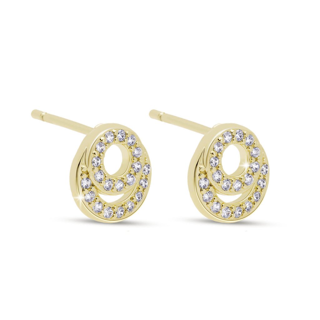 Az elegáns, két koncentrikus körből álló fülbevaló tökéletes kiegészítő azoknak a nőknek, akik szeretik a finom fényt és a modern dizájnt. Mindkét kört ragyogó, tiszta cirkónia kövek díszítik, amelyek minden mozdulatnál csodálatosan csillognak.