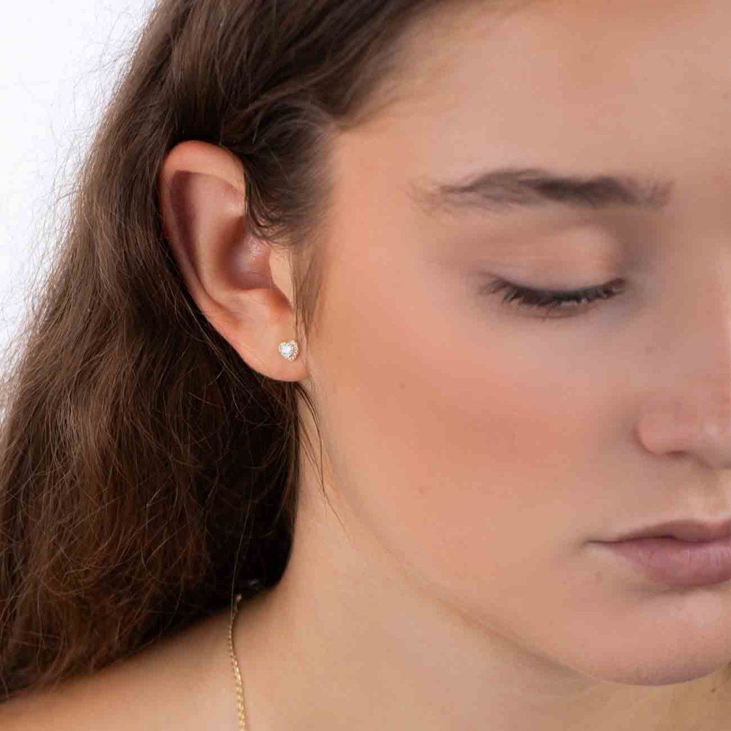 Ezüst aranyozott szív fülbevaló kocka cirkóniával.