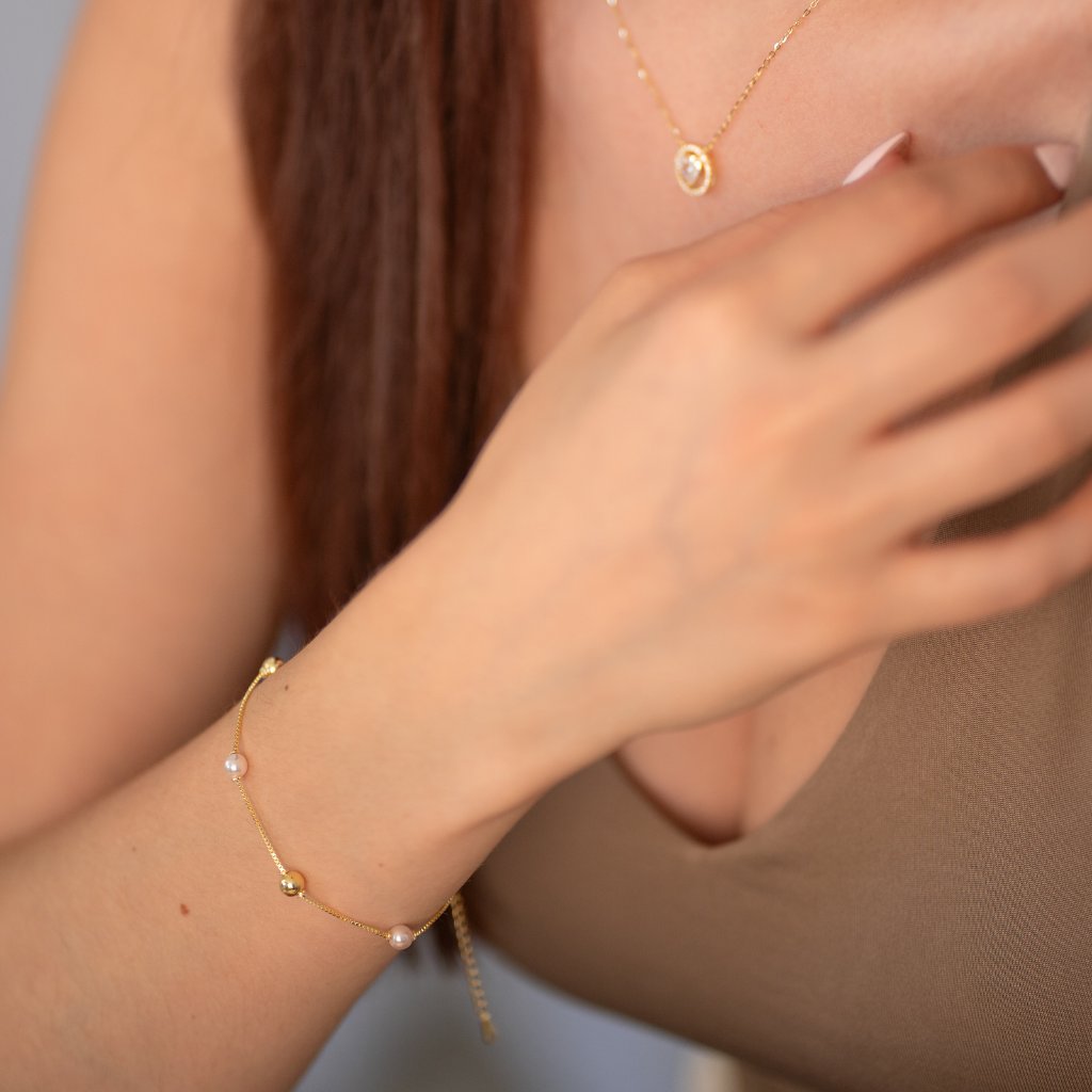 Aranyozott ezüst karkötő gyöngyökkel 2786
