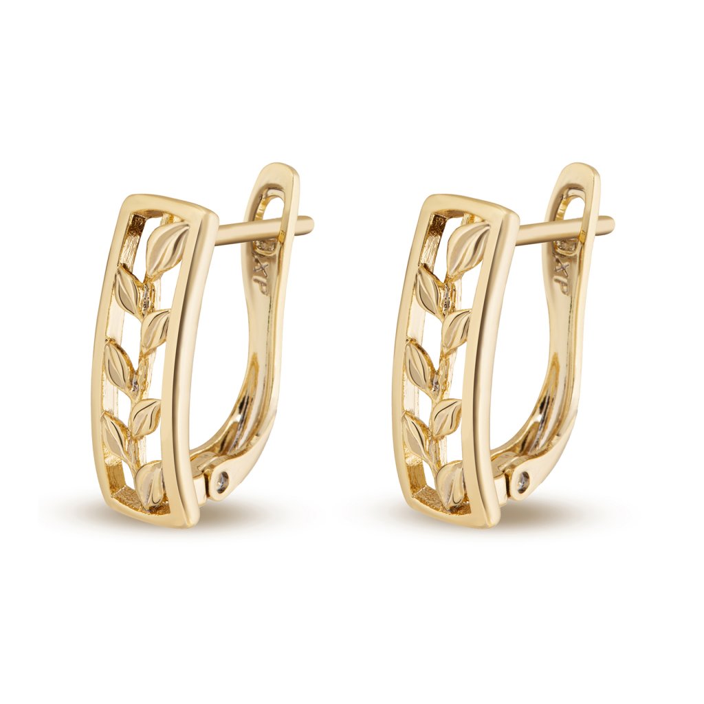 - 14k aranyozott fülbevaló, levelekkel díszített kerek pánt.