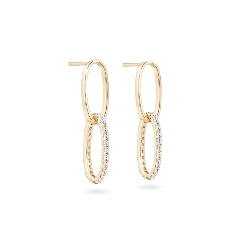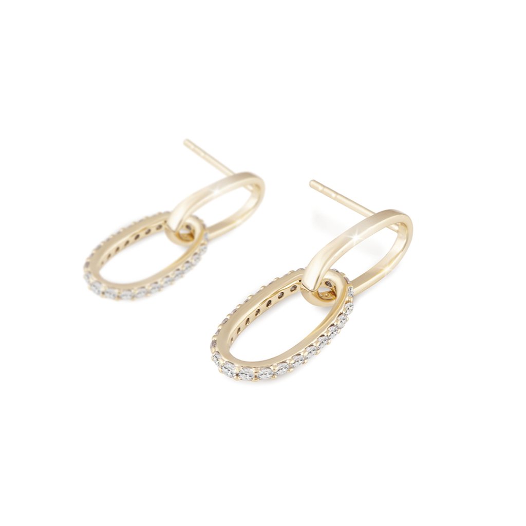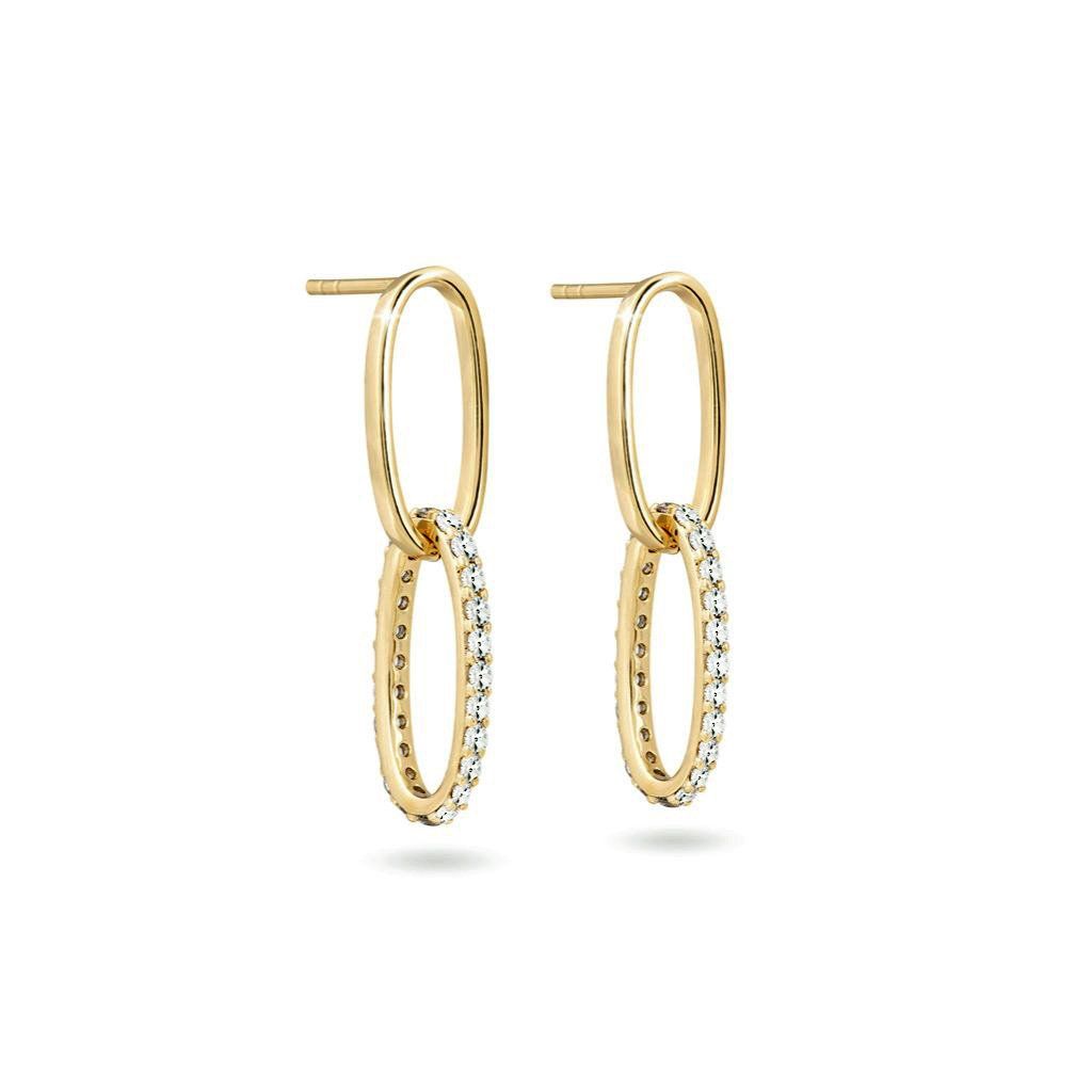 Aranyozott fülbevaló 14K, ovális, kocka cirkóniával lógó fülbevaló