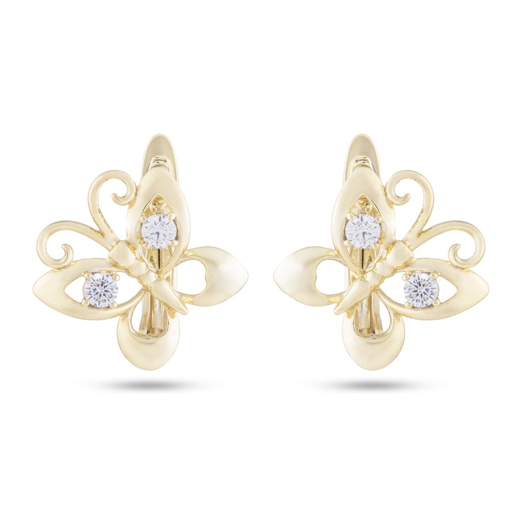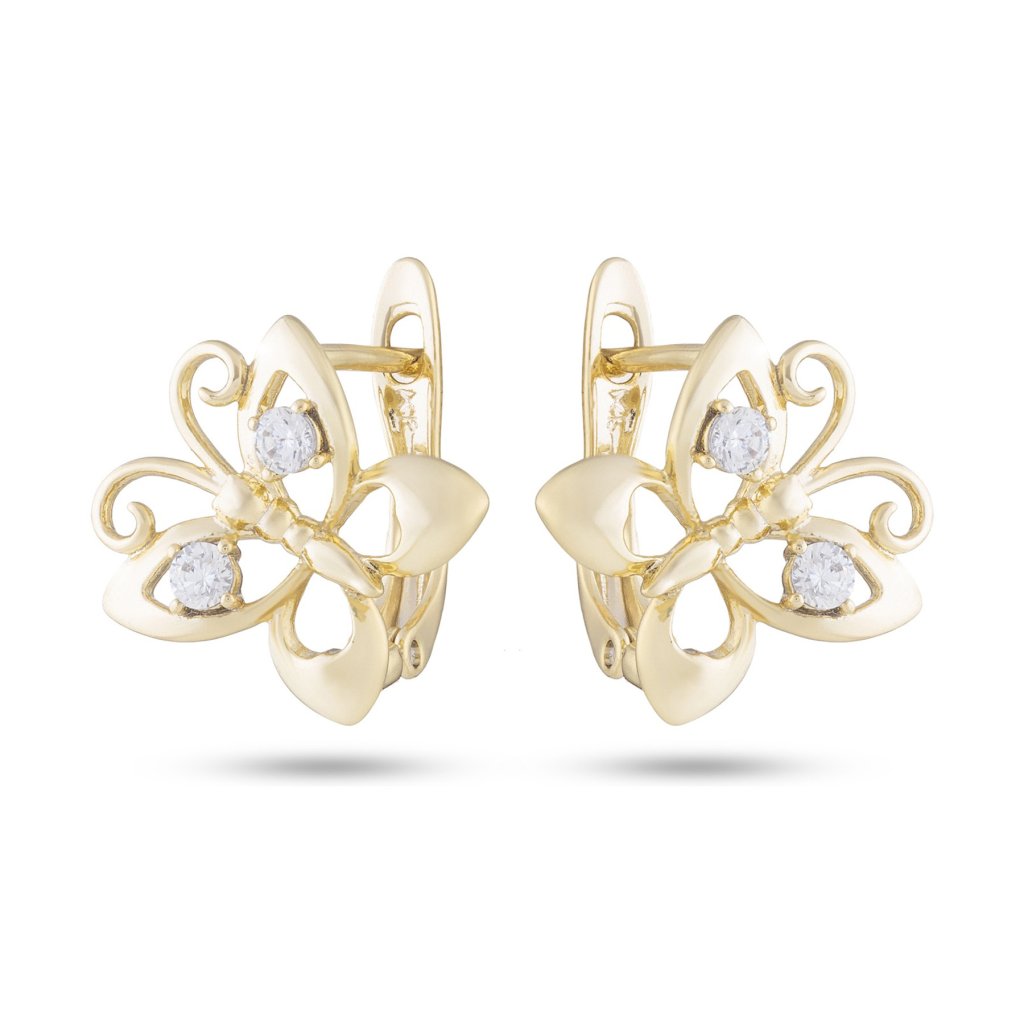 14k aranyozott fülbevaló pillangó motívummal, kockacirkóniával, nagyon jó minőségű kivitelezéssel.