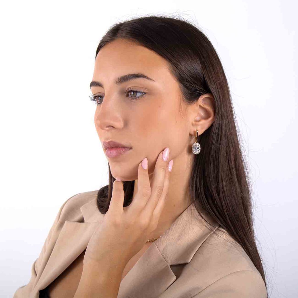 Időtlen elegancia tiszta formában. Ezek a cirkóniával szegélyezett, ovális áttetsző kővel díszített lógó fülbevalók finom csillogásukkal és visszafogott fényükkel hódítanak. A klasszikus orosz zárásnak köszönhetően gyönyörűen illeszkednek és egész nap a fülben maradnak. Ideális választás minden alkalomra – a munkahelyi megbeszélésektől a ünnepi estékig.