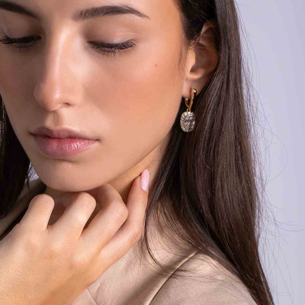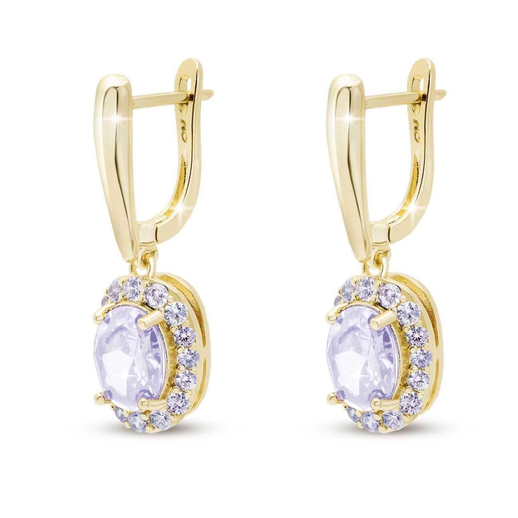 Aranyozott fülbevaló áttetsző ovális kristállyal és áttetsző foglalattal 3797-4