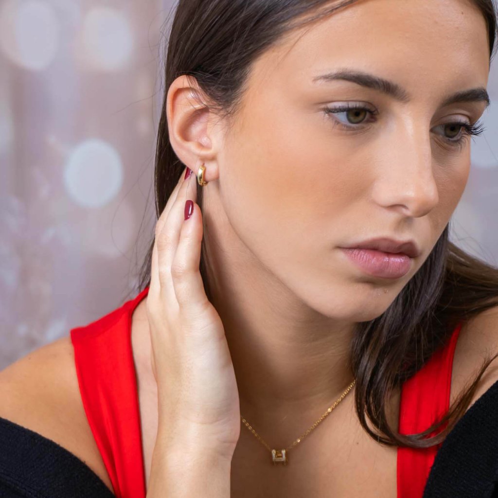 A minimalista design luxus kivitelben – ezek az elegáns, karika fülbevalók időtálló kiegészítői lesznek az ékszerdobozodnak. A letisztult vonalak és a fényes felület tökéletesen passzol minden öltözékhez.