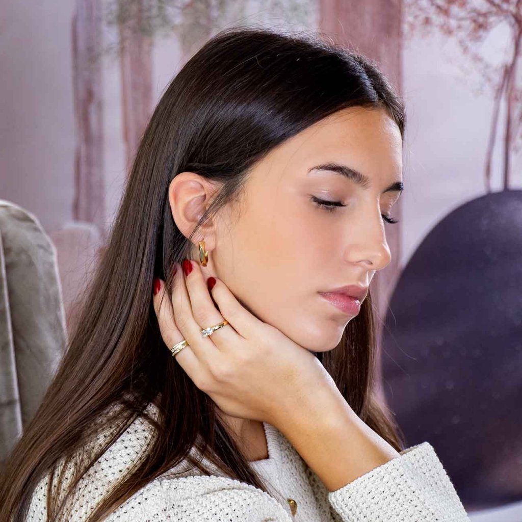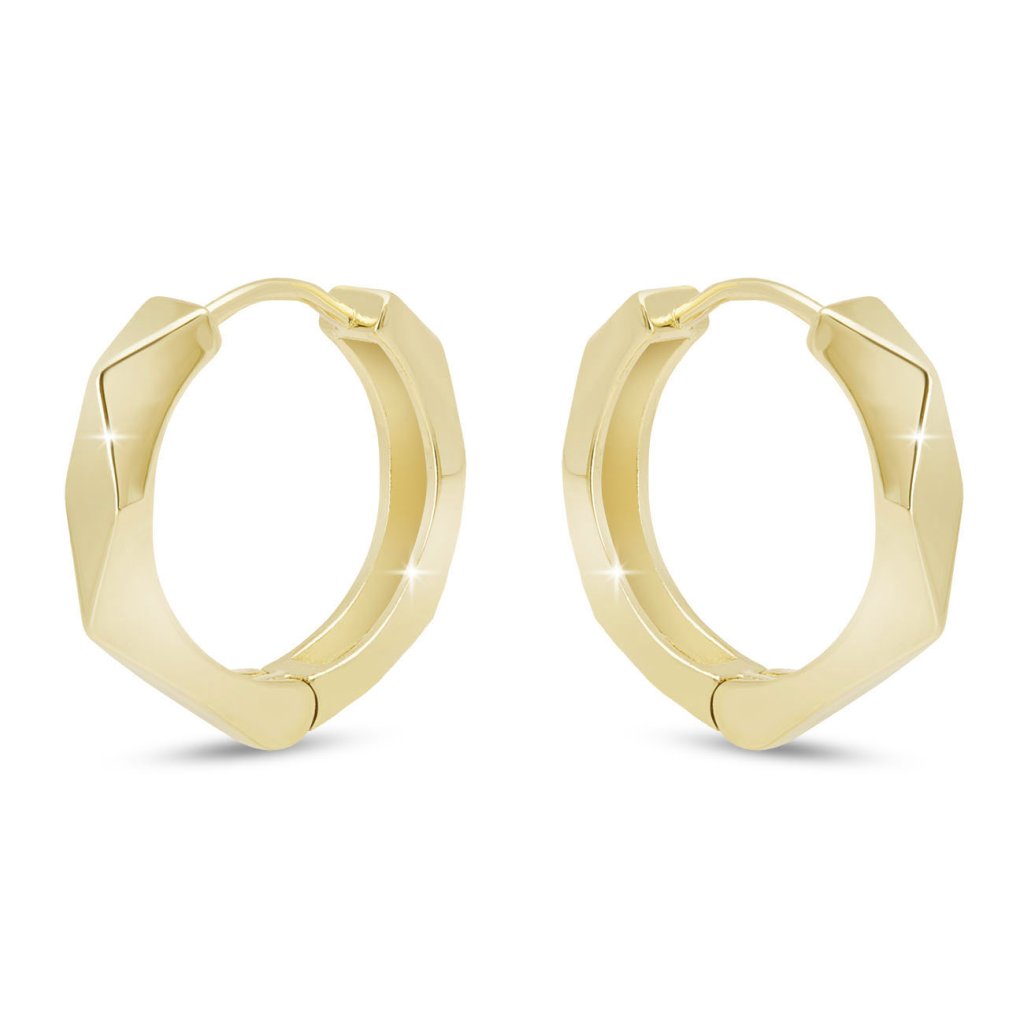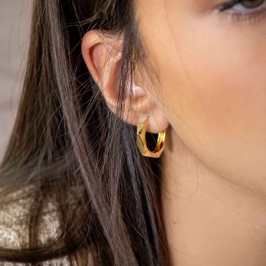 Az elegáns, kör alakú, eredeti csiszolású felületű fülbevalók első pillantásra megragadják a figyelmet. A fényes, fazettált, arany árnyalatú design kifinomult és egyben kifejező hatást kelt. Ideális választás azok számára, akik olyan ékszert keresnek, amely ötvözi az egyszerűséget a modern karakterrel.