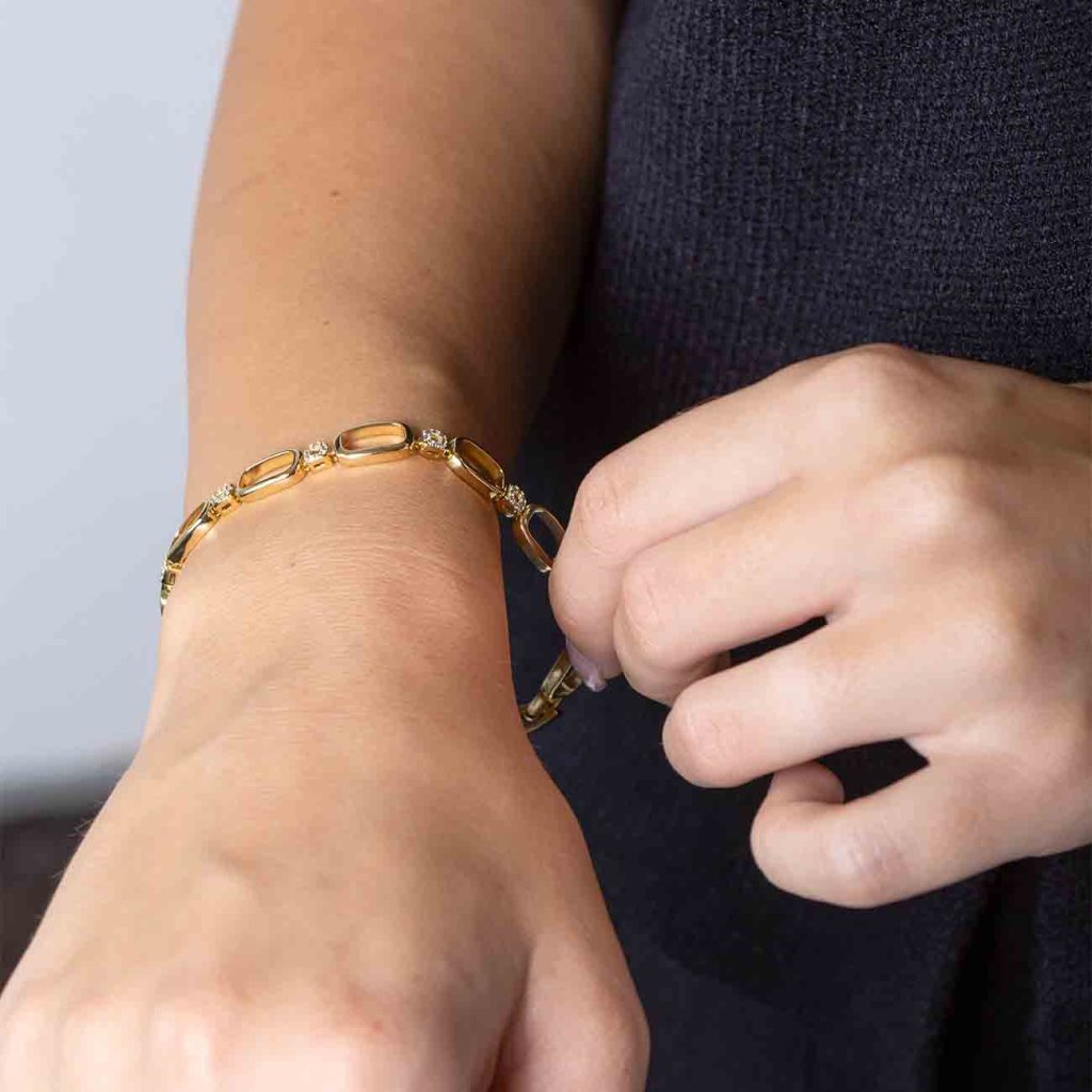 Aranyozott karkötő finom cirkónia kövekkel és geometriai elemekkel 2222