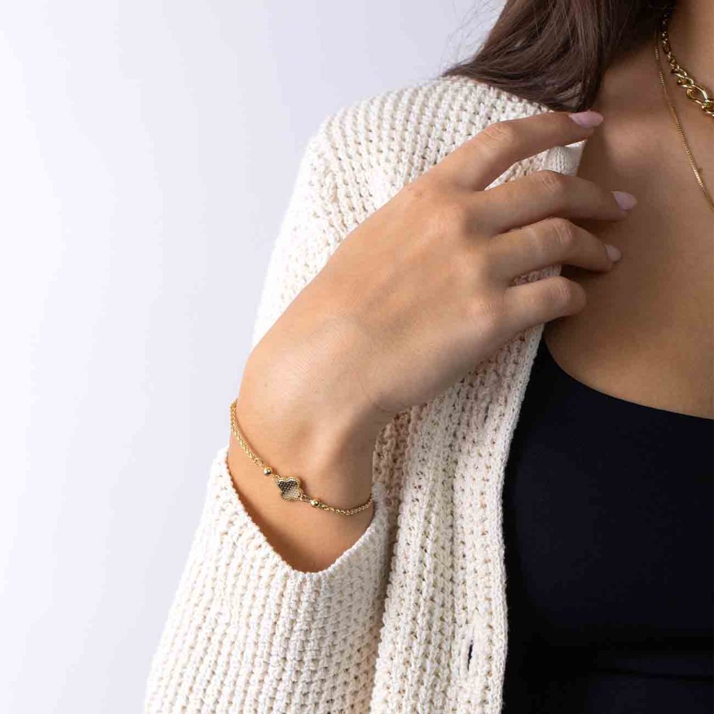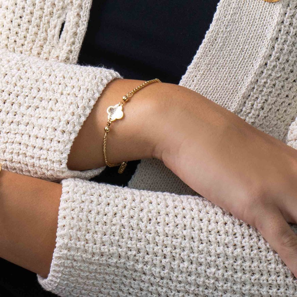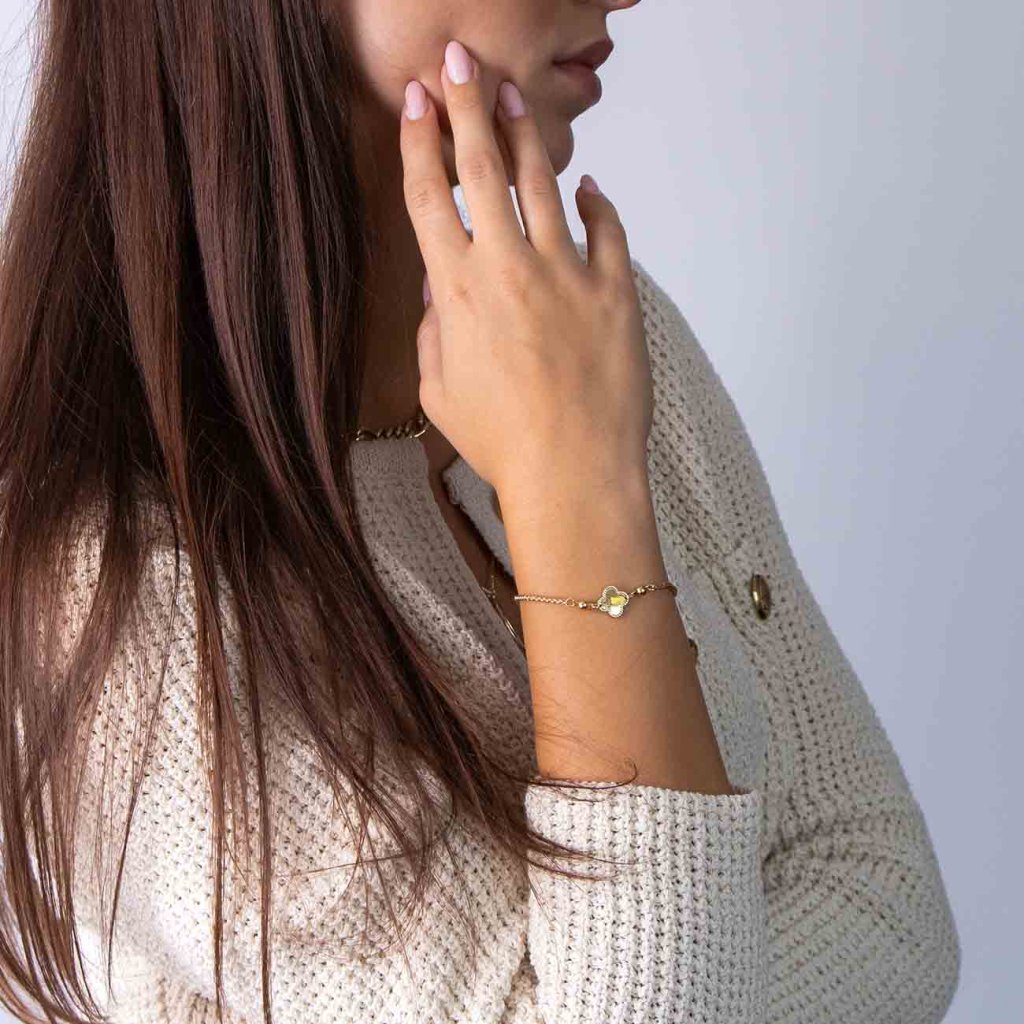 Aranyozott karkötő négylevelű lóherével és golyókkal 3000