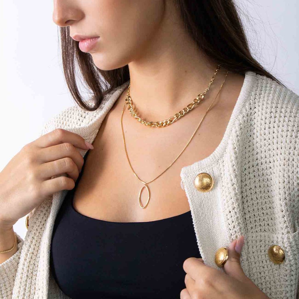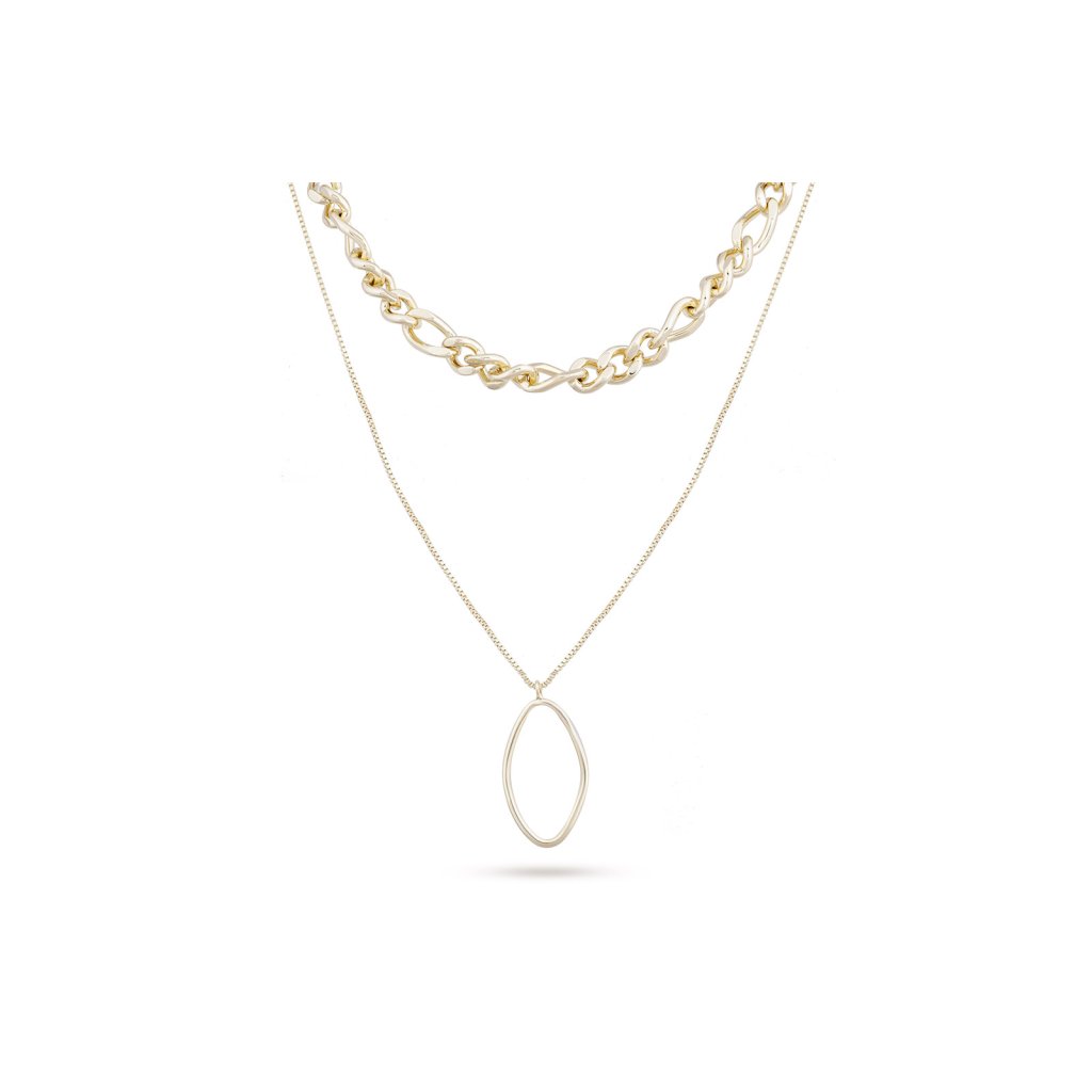 Női kétsoros lánc, 14k aranyozott aranyból, ovális formájú geometrikus elemmel.