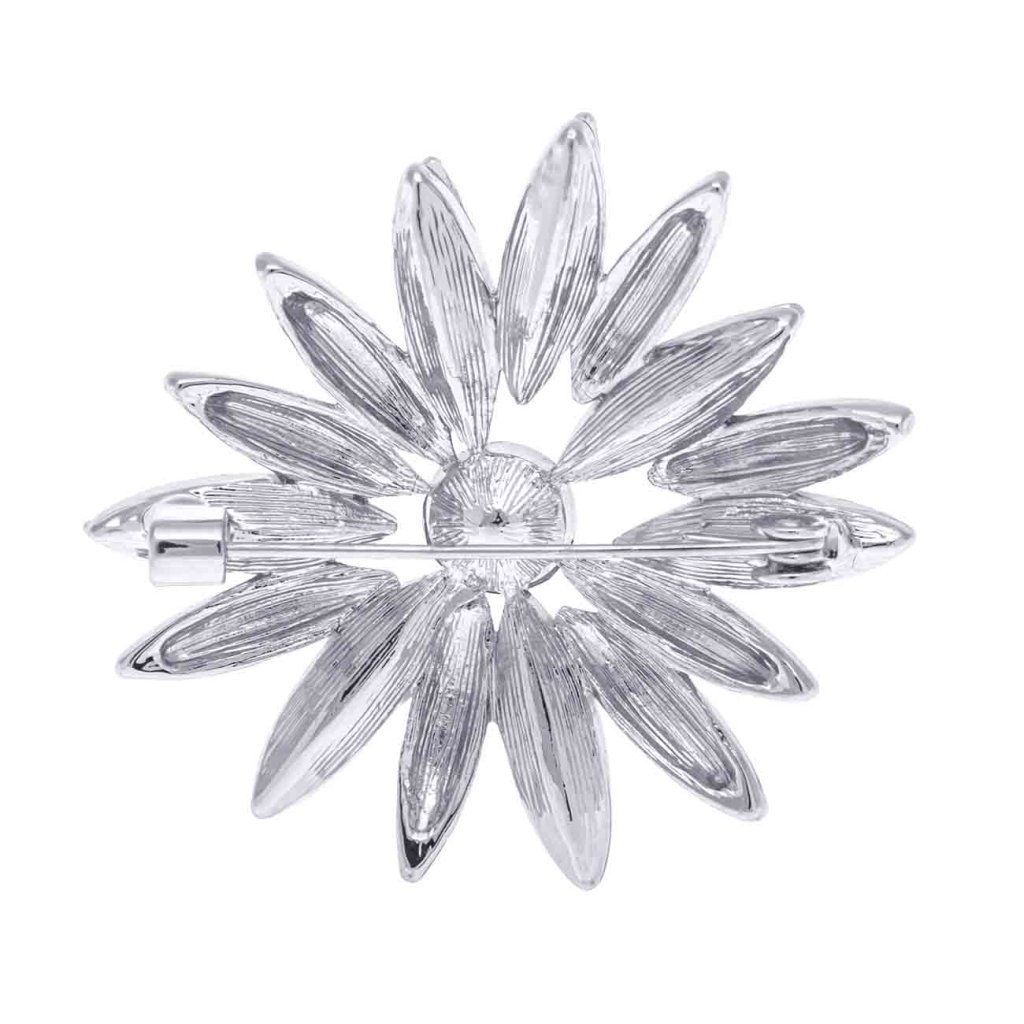 Az elegáns, virág alakú bross eredetiségével és finom fényével ragyog. Minden egyes szirom sima fém és csiszolt, csepp alakú, tiszta cirkónia kövek váltakozásával harmonikus és luxus dizájnt alkot. A virág közepét egy nagyobb, ragyogó kő díszíti, amely gyönyörűen veri vissza a fényt, és csillogó hangsúlyt kölcsönöz az ékszernek. A bross feltűnő, mégis ízléses – ideális kiegészítő ünnepi és elegáns öltözékekhez.