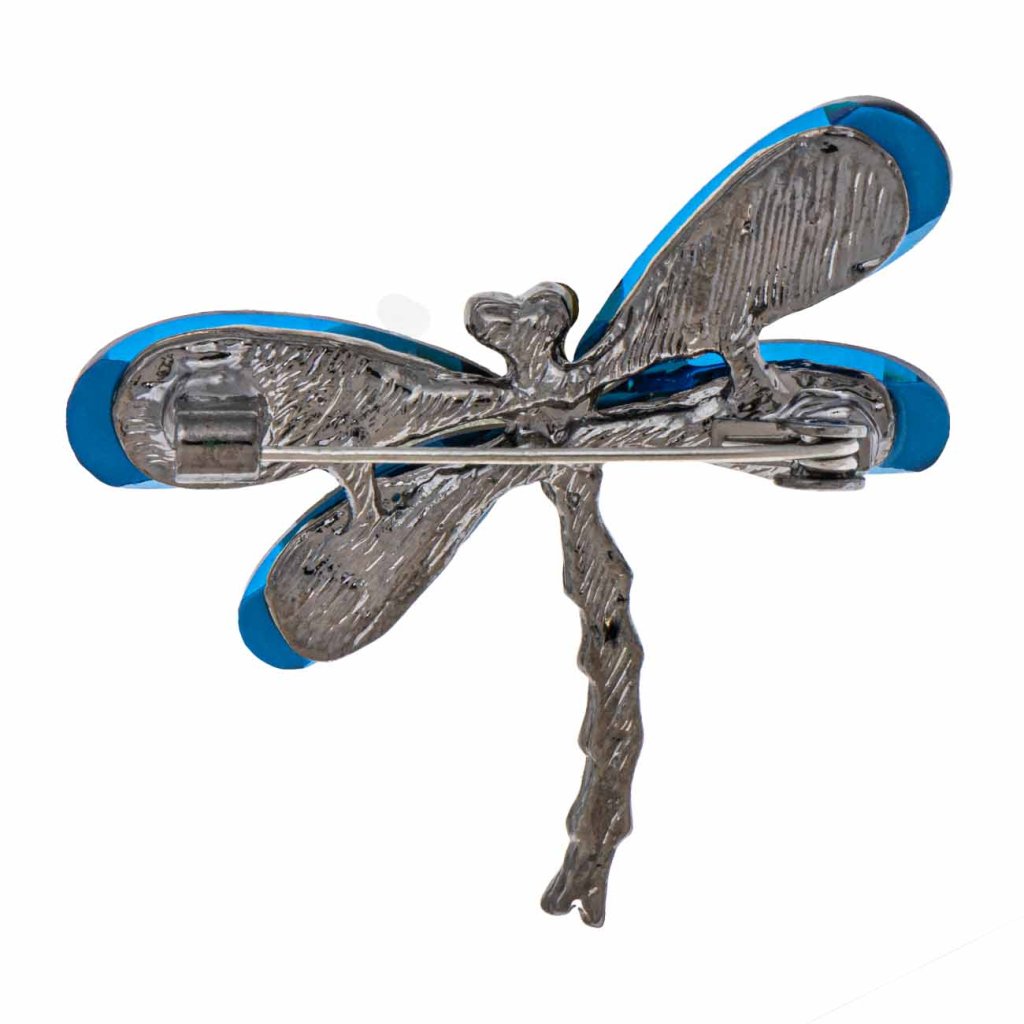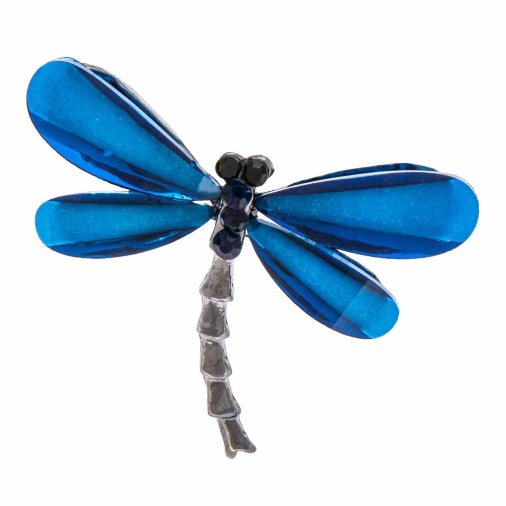 Egy ötletes, szitakötő alakú bross, feltűnően kék szárnyakkal és sötéten díszített testtel. Stílusos ékszer, amely feldobja bármelyik öltözéket, és egy csipetnyi nyári könnyedséget visz a napodba.