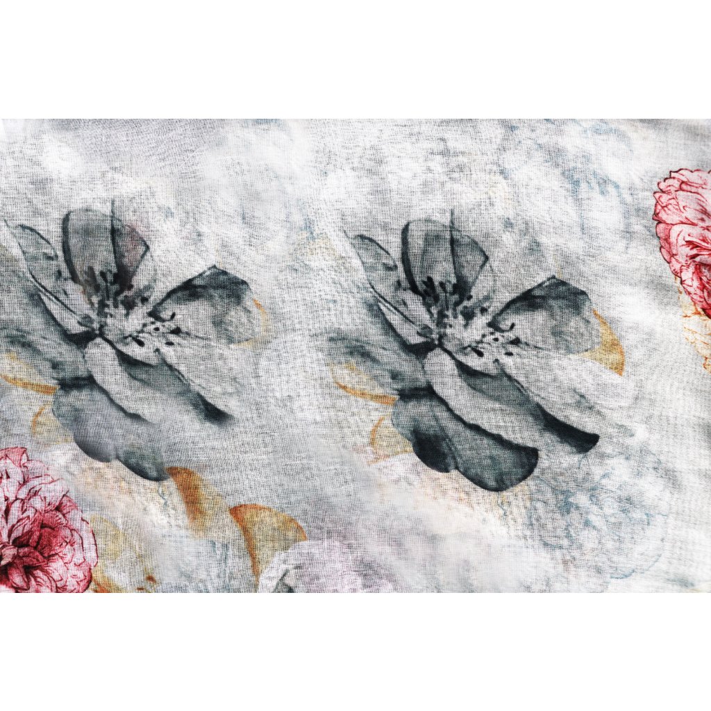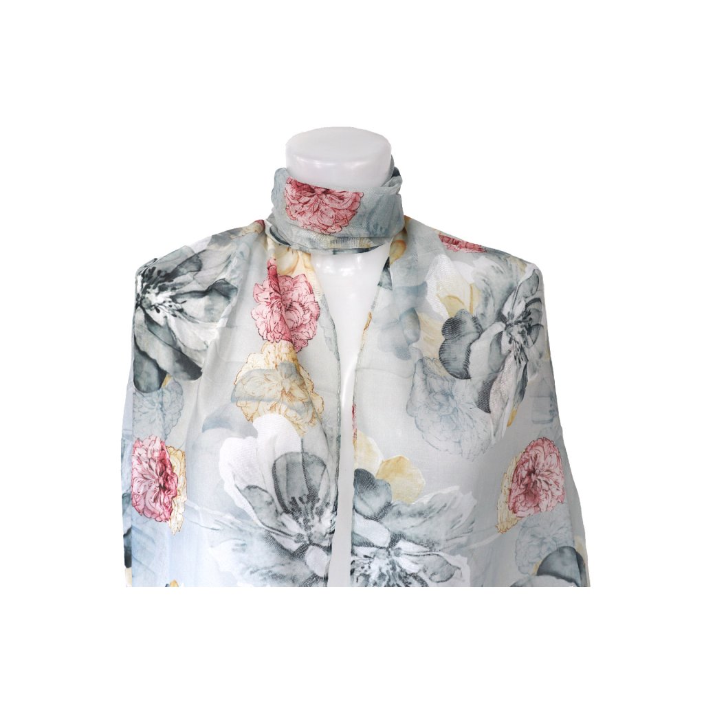 Női könnyű sál bazsarózsa mintával XC36530 - szürke