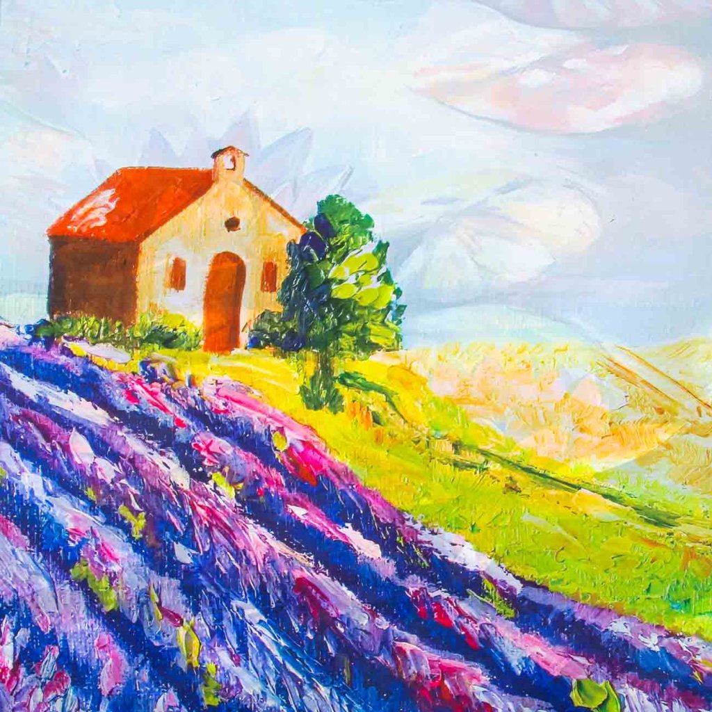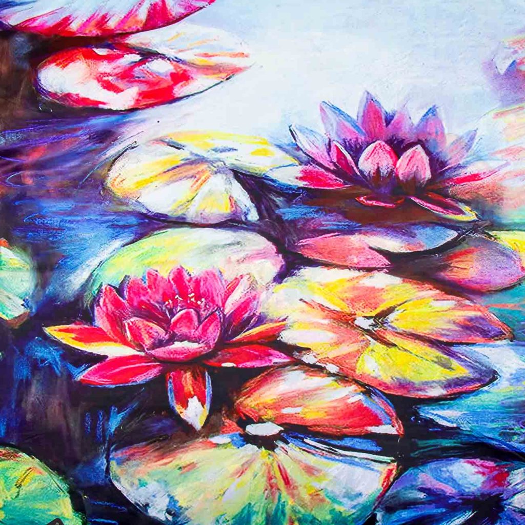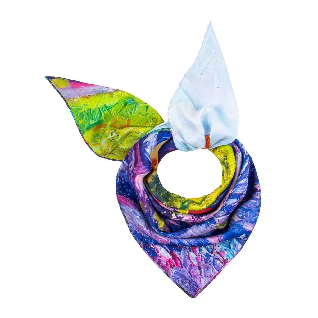 Női sál festmény mintával - Tündérrózsák és Templom levendulamező felett 7200733-30