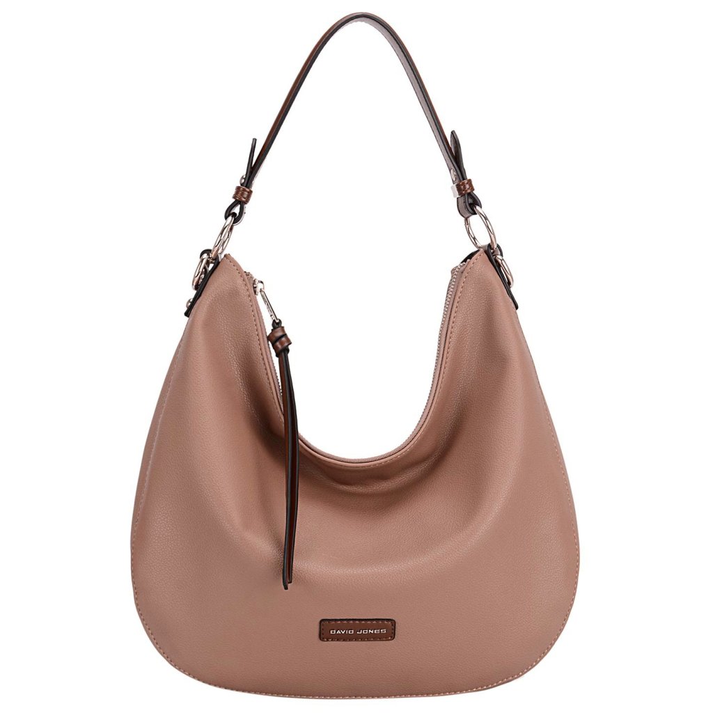 - Kerek téglalap alakú, egyedi textúrával. A kézitáska elülső paneljét a David Jones márka ezüstszínű logója díszíti, a kézitáska hátsó paneljét pedig egy cipzáras zseb.