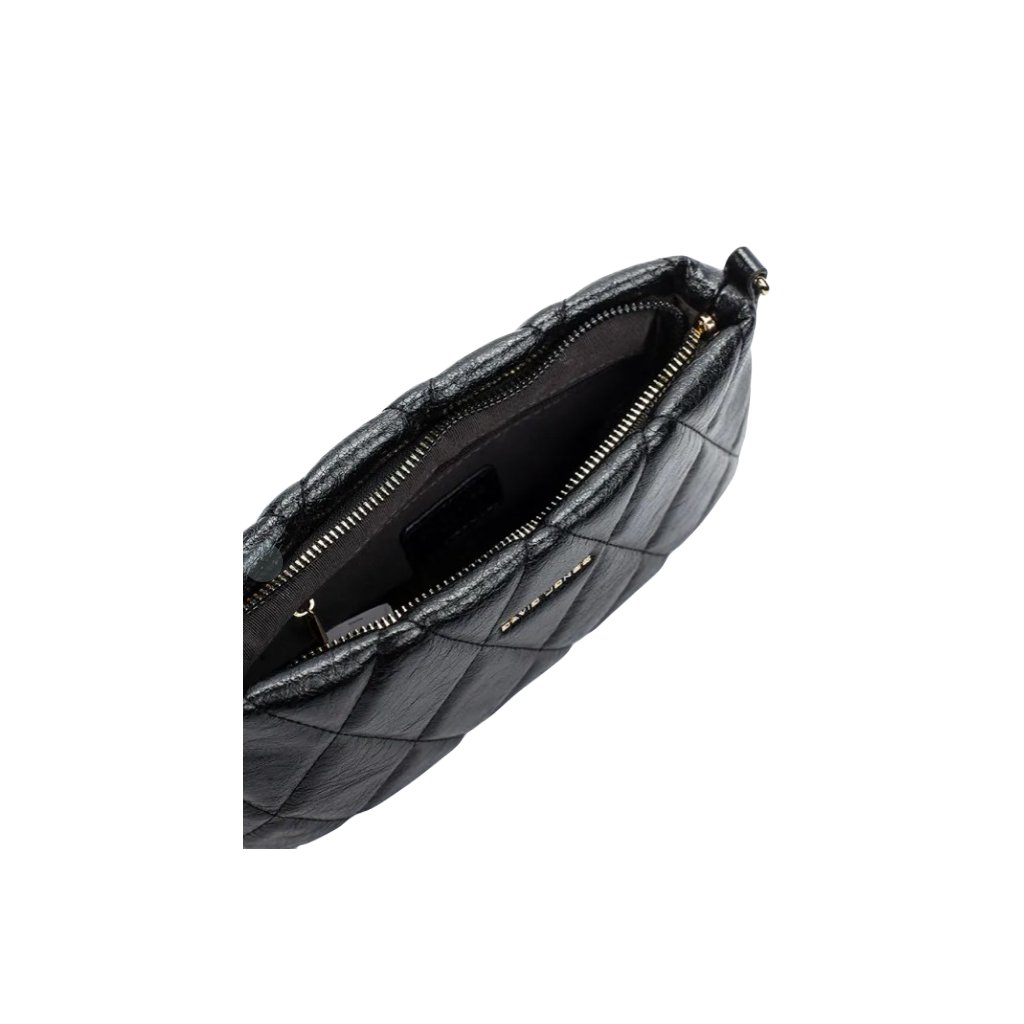 - A táska hosszú, aranyszínű lánccal ellátott pánttal rendelkezik, amely karabinerekkel levehető.
