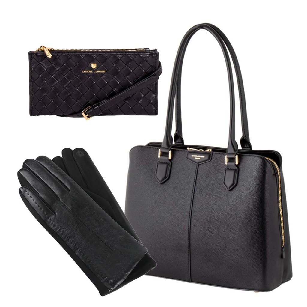 368-as divatos Black Prestige szett – kézitáska, pénztárca és kesztyű