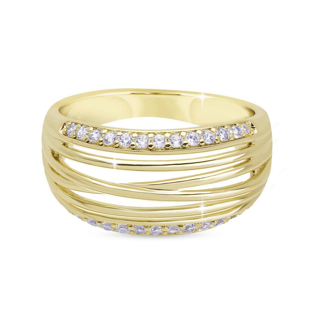 Ez a stílusos gyűrű szokatlan kialakításával nyűgöz le, amely ötvözi a finom vonalakat a csillogó kövekkel. A gyűrű vonalai finoman hullámzó szalagokra emlékeztetnek, amelyek közé két sor apró, kerek cirkónia van beágyazva, lenyűgöző fényt kölcsönözve minden kézmozdulatnak.
