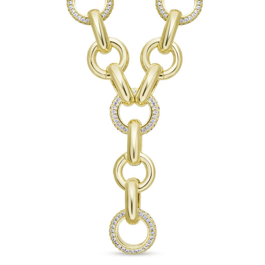 Merítsen stílusához egy merész és elegáns érintést. Ez a feltűnő lánc lenyűgöző a kapcsolt szemek precíz kialakításával és a cirkóniák finom csillogásával, amely kiemeli egyediségét.