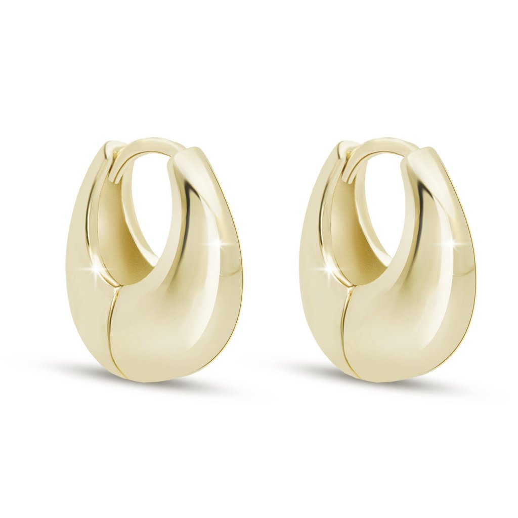 Az elegáns, hangsúlyosan lekerekített formájú fülbevalókat a minimalista design és a magas fény jellemzi. A 14 karátos arannyal bevont felület kifinomult megjelenést kölcsönöz a fülbevalóknak, amely minden öltözékhez illik.