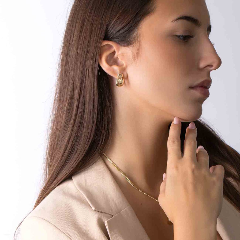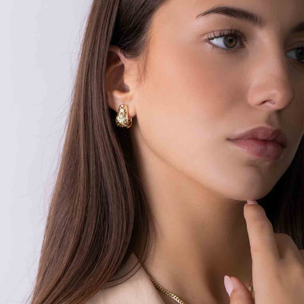 Hódítson meg az időtlen eleganciával! Ezek a fülbevalók elbűvölően részletgazdag filigrán motívummal rendelkeznek, amely egy csipetnyi luxust és eredetiséget kölcsönöz az ékszernek. Finom fénye a visszafogott mérettel kombinálva tökéletes kiegészítővé teszi a mindennapi viselethez és a különleges alkalmakhoz egyaránt. Stílus, amely sosem megy ki a divatból.