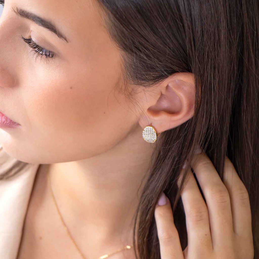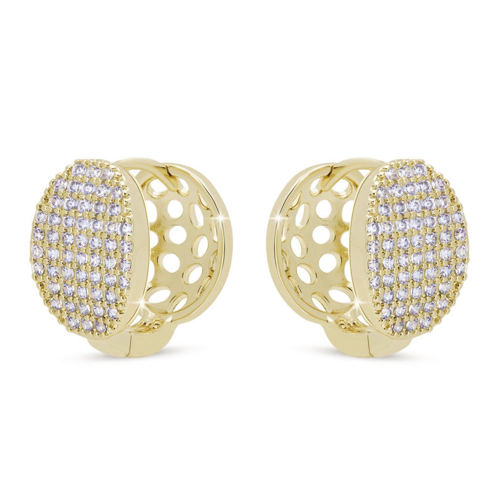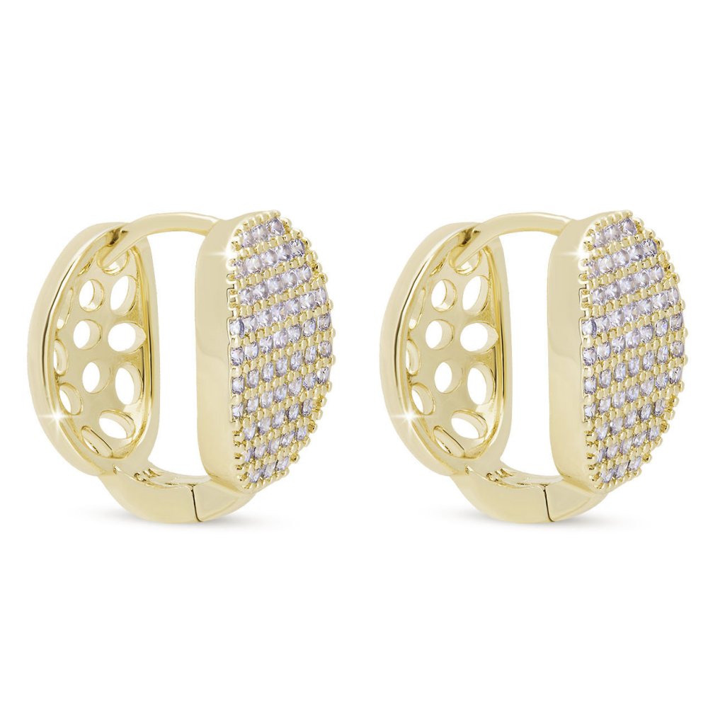 Időtlen design, amely vonzza a tekintetet. A ragyogó, tiszta cirkónia kövekkel díszített ovális fülbevalók egyszerre hatnak kifinomultan és luxus módon. A kövek precíz elhelyezése csillogó felületet hoz létre, amely gyönyörűen veri vissza a fényt, és kiemeli minden arc vonásait. A kapcsos zárásnak köszönhetően tökéletesen illeszkednek és könnyen felhelyezhetők. Kiváló választás esti eseményekre és a mindennapi öltözék stílusos kiegészítőjeként is.