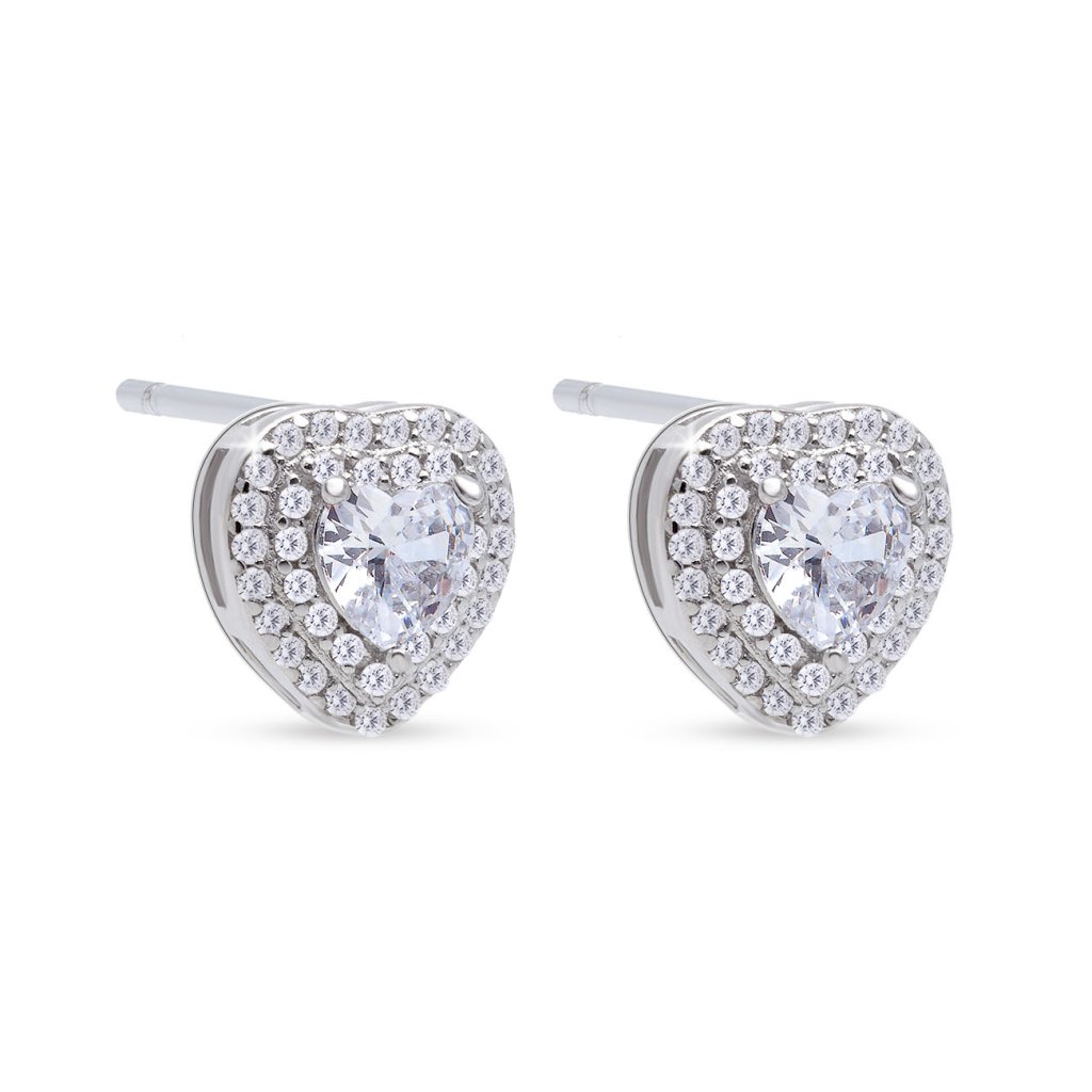 Ezüst, dupla cirkónium szíves bedugós fülbevaló 3631