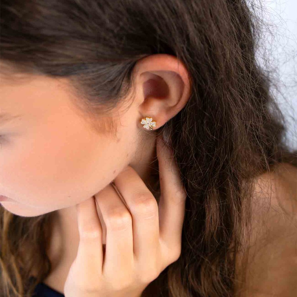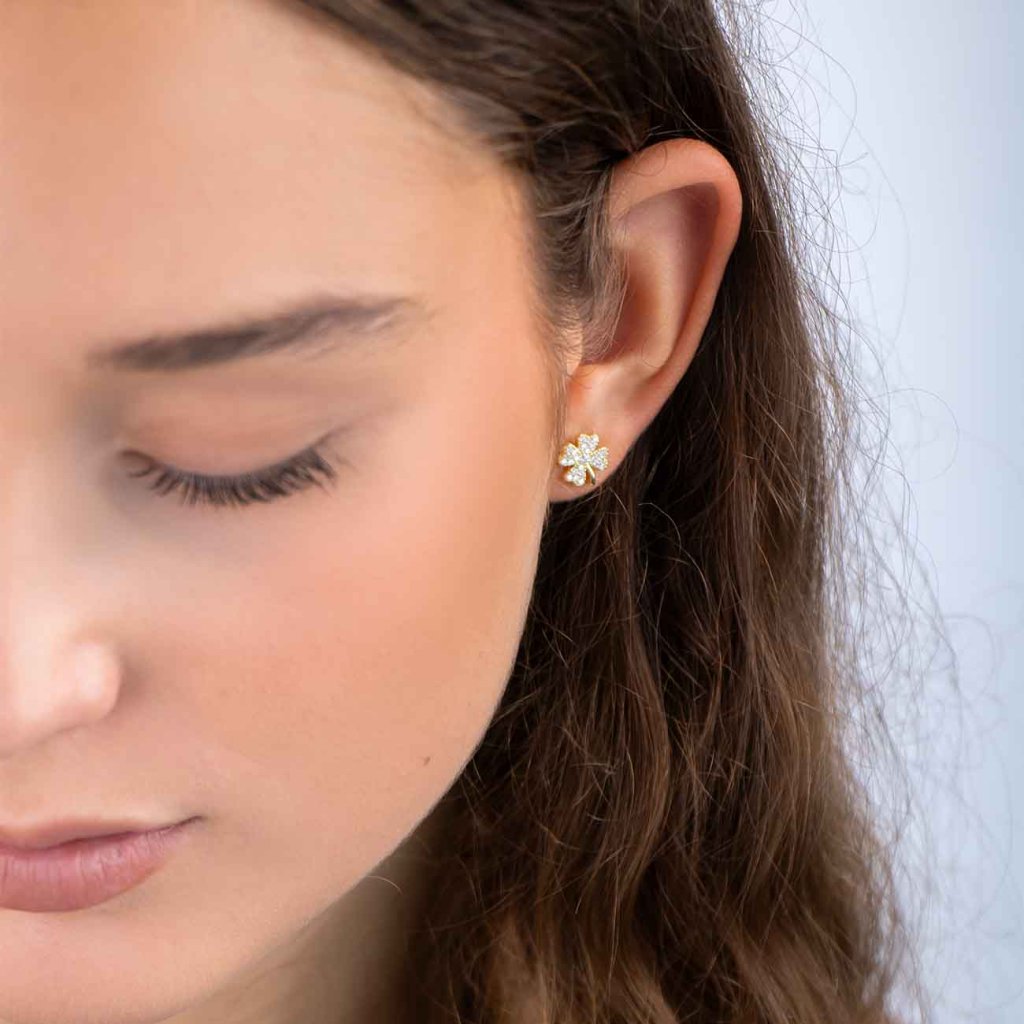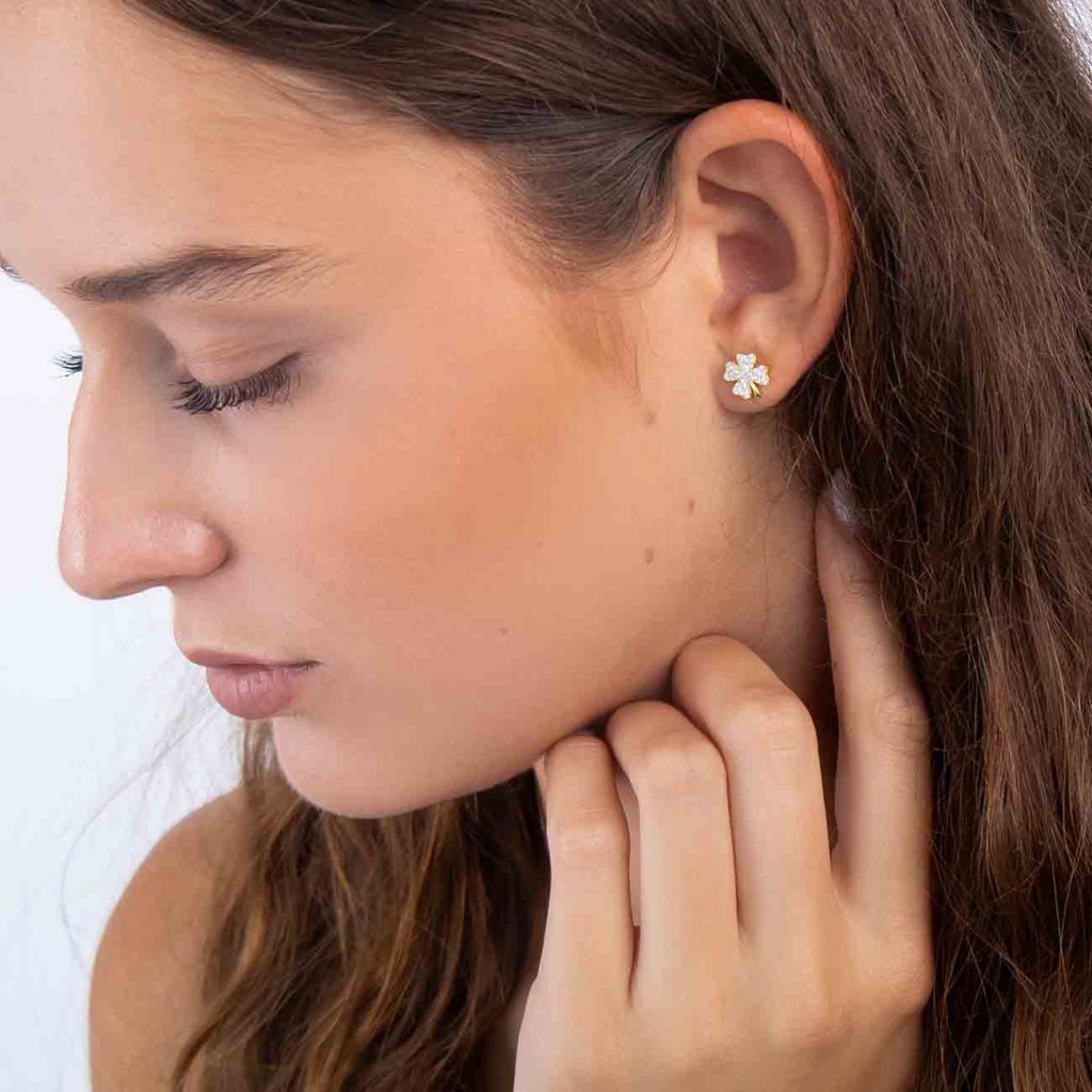 Aranyozott ezüst virágos beszúrós fülbevaló 3350