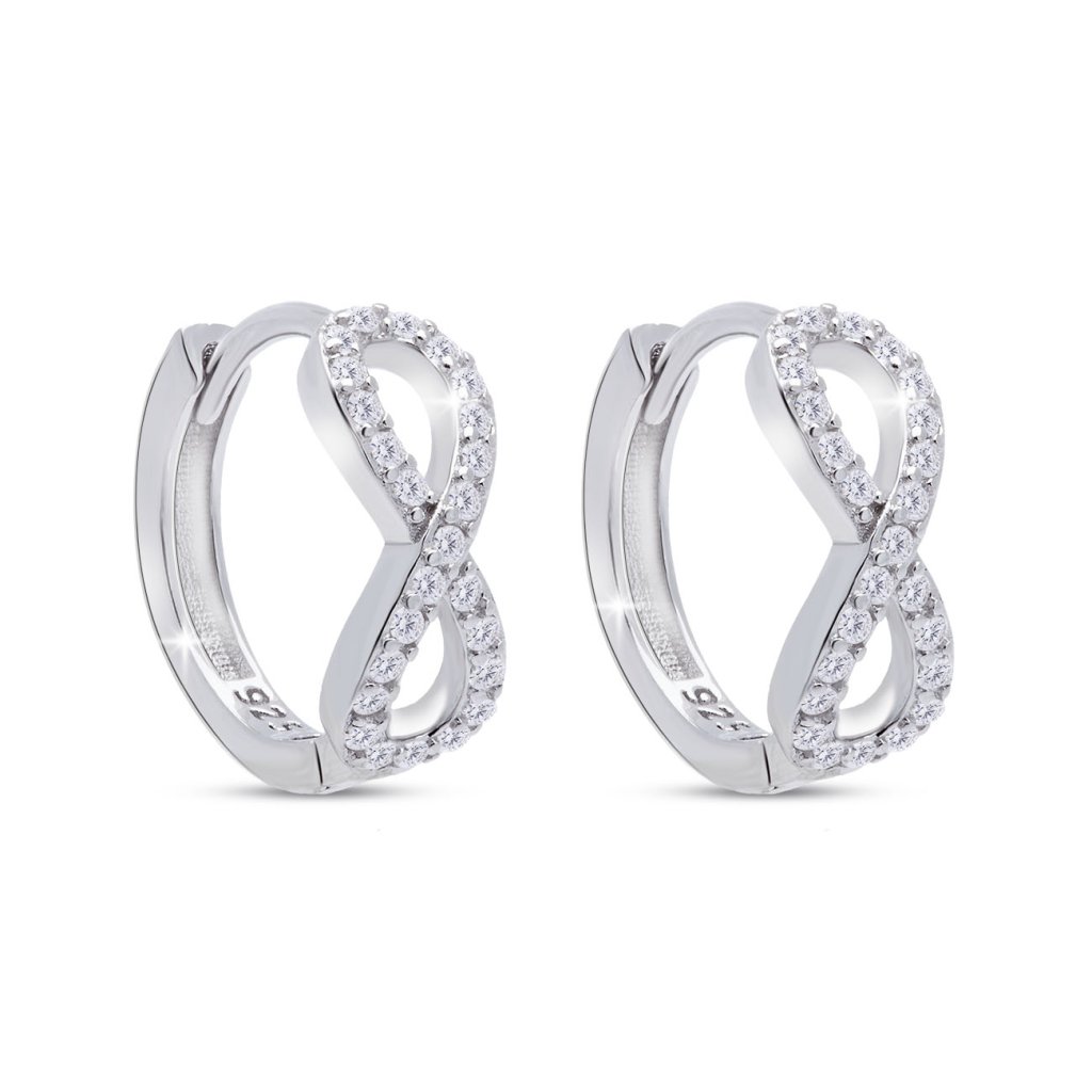 Az elegáns, finoman összefonódó végtelen szimbólum formájú fülbevalók a kapcsolat, a szerelem és a végtelen lehetőségek szépségét képviselik. A fényes cirkónia kövek káprázatos csillogást kölcsönöznek az ékszereknek, miközben megőrzik finomságukat, így ideálisak mindennapi viseletre és ünnepi alkalmakra egyaránt.