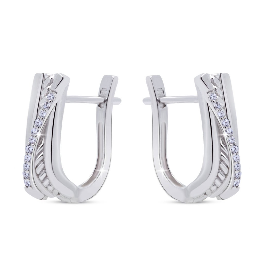 Az elegáns, félkör alakú ezüst fülbevalók finom, áttört mintázatukkal hívják fel magukra a figyelmet, melyet ragyogó, tiszta cirkónia vonalvezetése egészít ki. A részletes kidolgozásnak és a finom fénynek köszönhetően egyszerre hatnak luxusnak és finomnak. Remek kiegészítő a mindennapi és az ünnepi viselethez is.