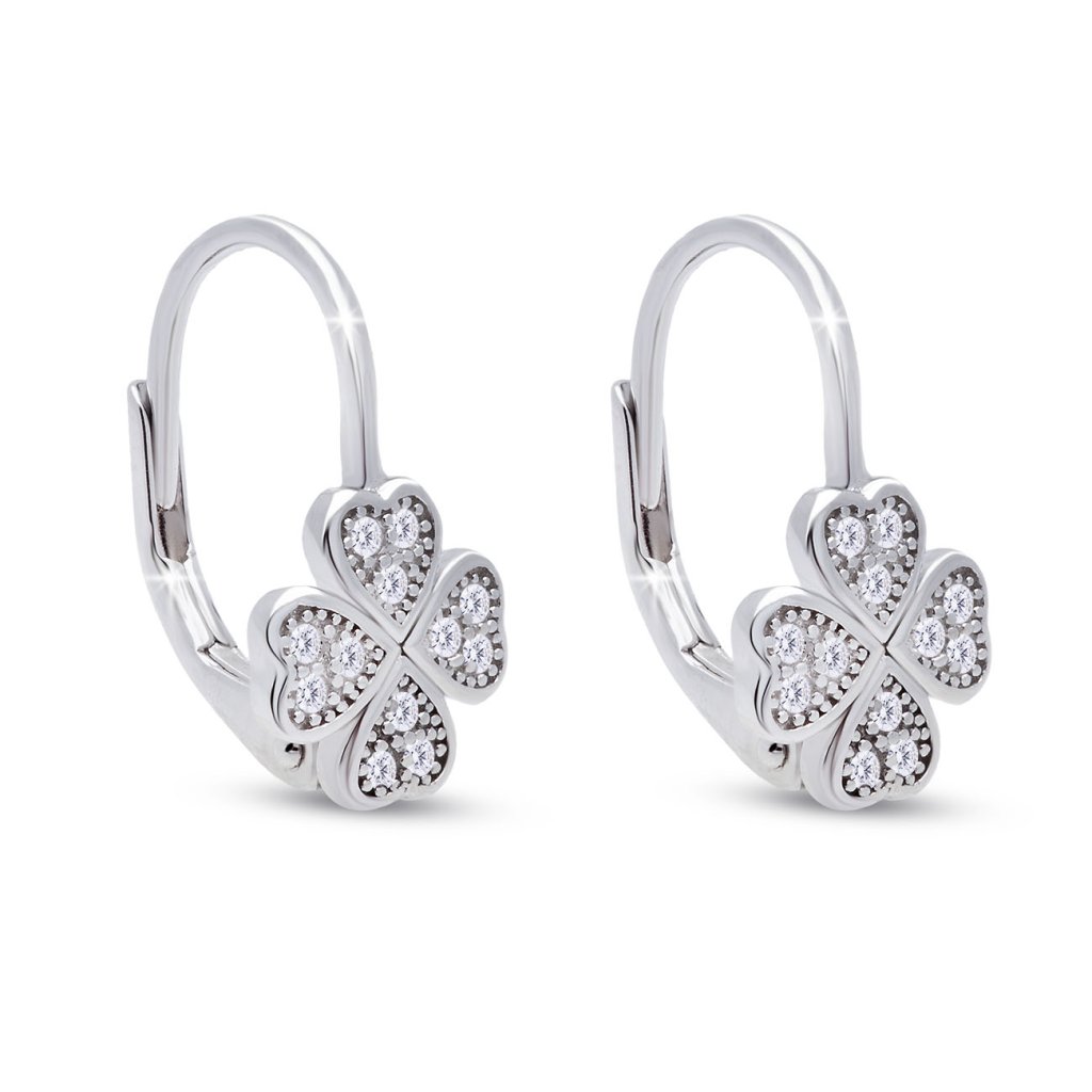 Szerezz szerencsét a bájos, négylevelű lóhere motívumú ezüst fülbevalókkal. Minden szív alakú levél apró, tiszta cirkóniákkal van díszítve, amelyek csillogást és eleganciát kölcsönöznek az ékszernek. A szerencse, a szerelem és a remény szimbóluma modern kivitelben.