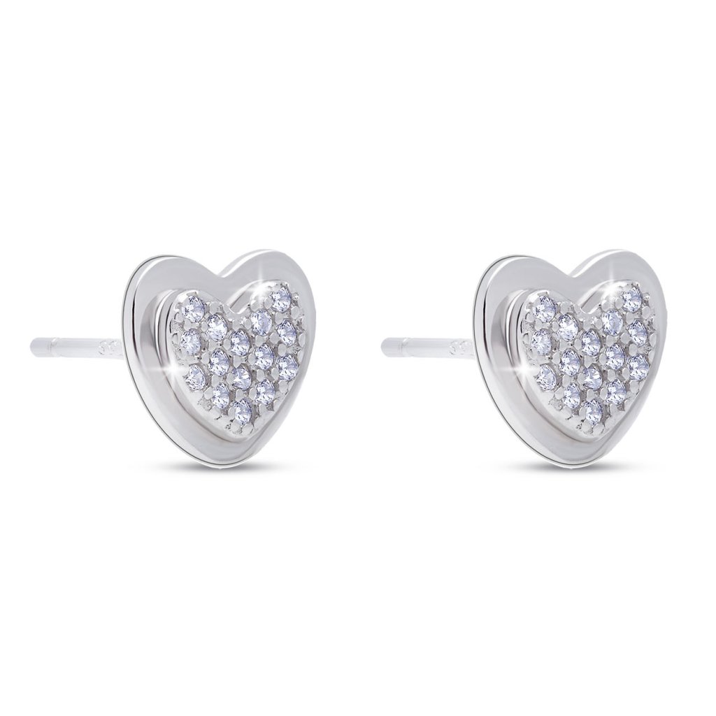 A romantikus, szív alakú ezüst fülbevaló minden gyengéd szívet megörvendeztet. A dupla hatást a kiemelt belső szívnek köszönheti, melyet csillogó, tiszta cirkónia kövek díszítenek, így egy lenyűgöző és elegáns ékszer jön létre, amely alkalmas mindennapi viseletre és ünnepi alkalmakra is.