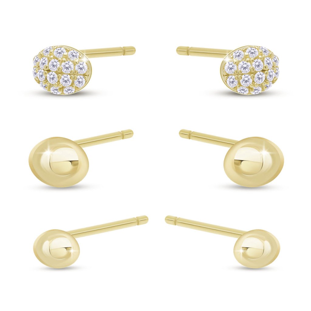 Ezüst fülbevaló aranyozott ovális formájú csiptetők - 3db-os készlet.