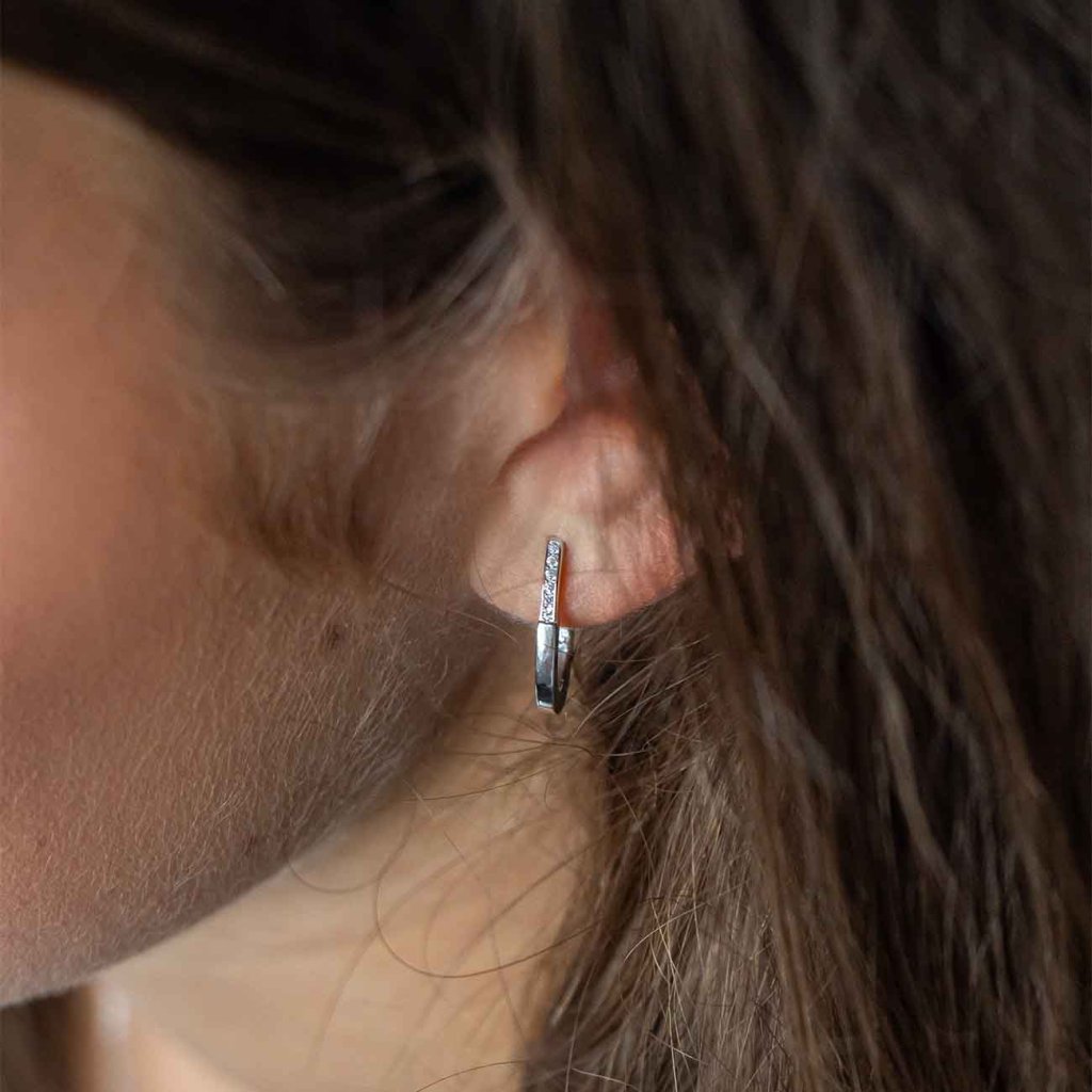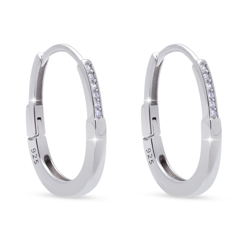 Elegáns, kör alakú, Ag 925/1000 ezüst fülbevaló sima felülettel és finom, tiszta cirkónia vonallal, amely megtestesíti az egyszerűséget, ami sosem megy ki a divatból. Minimalista dizájnjának köszönhetően ideális kiegészítő a mindennapi viselethez és diszkrét ékszer az estélyekhez. A praktikus zárás kényelmes viseletet és biztonságos rögzítést biztosít.