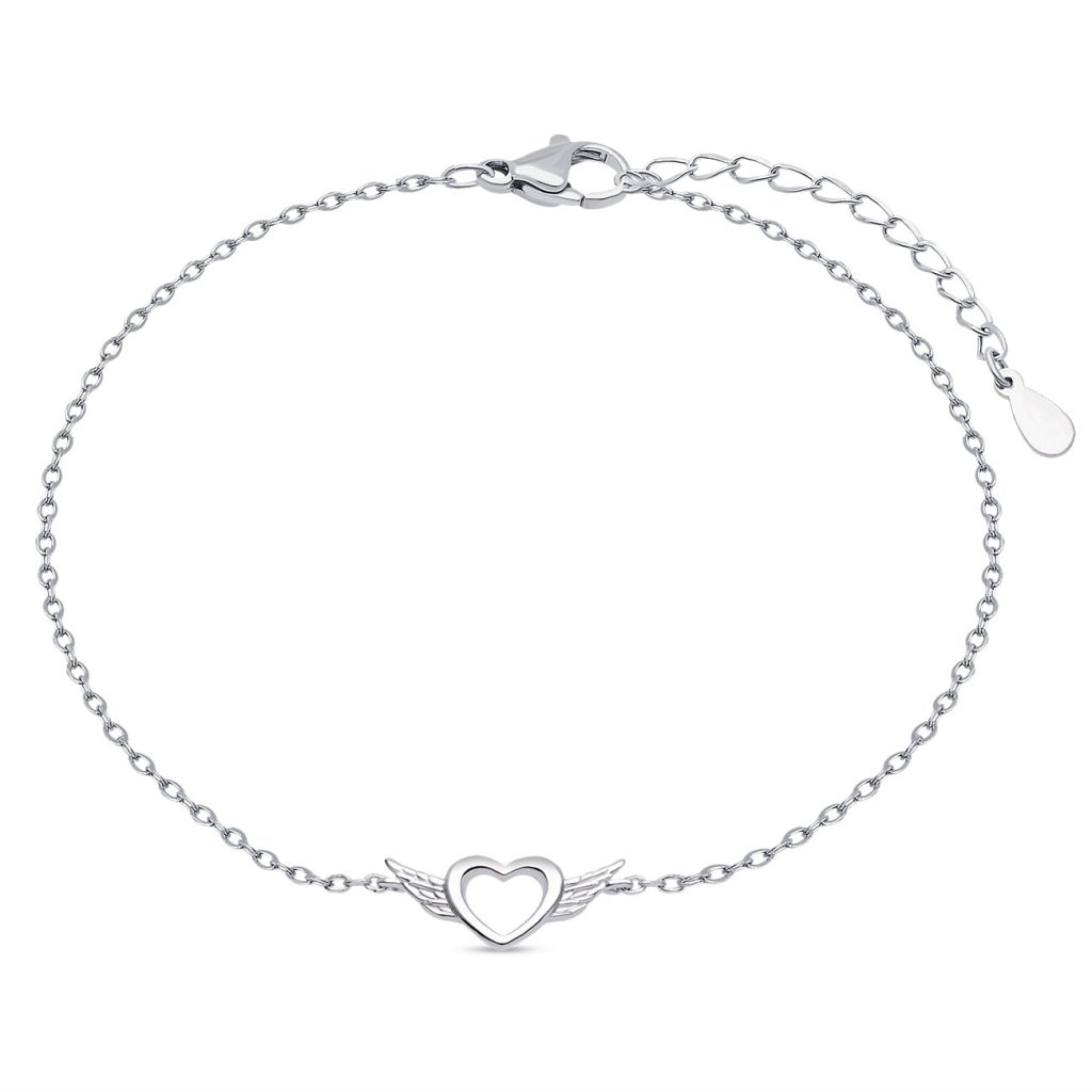 Ez az elegáns, finom szárnyas szívecskével díszített karkötő tökéletesen kiegészíti a mindennapi öltözéket. Az állítható hosszúságnak köszönhetően minden csuklóra illik. Ideális ajándék a szerelmednek.