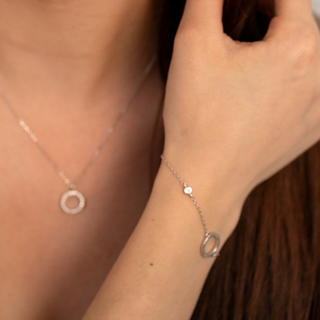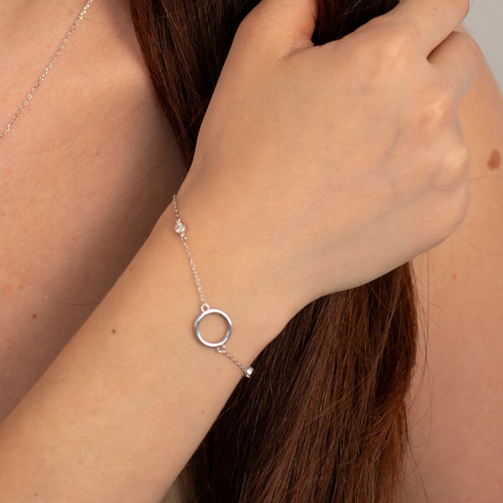 Ezüst karkötő körrel és két oldalsó cirkónnal 2884