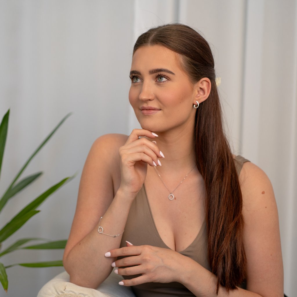 Minimalizmus és finom csillogás – pontosan ezt kínálja ez az ovális motívummal ellátott ezüst karkötő. A precízen beillesztett cirkónokkal díszített középső rész finom eleganciát kölcsönöz az ékszernek, míg a két oldalsó kő harmonikus dizájnt alkot. Az állítható lánchossznak köszönhetően tökéletesen illeszkedik minden csuklóra.