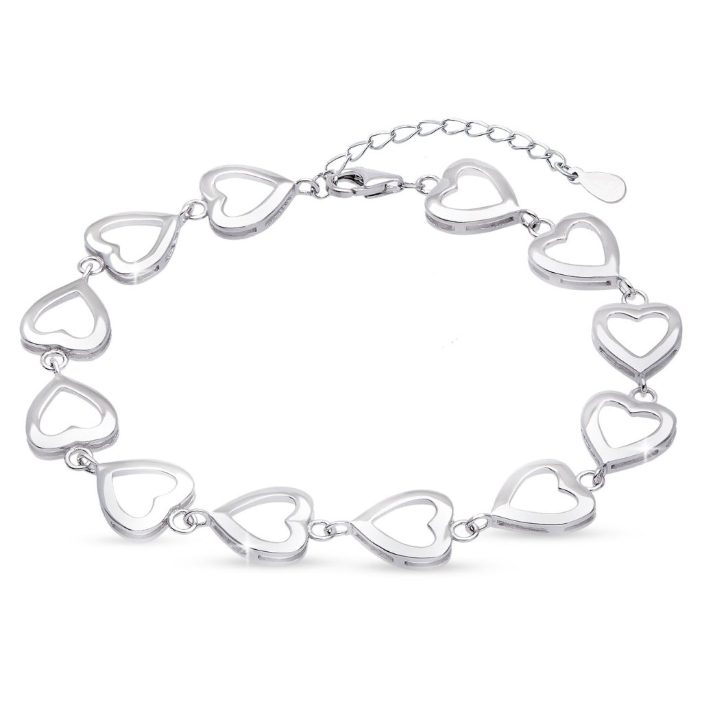Ez a bájos karkötő finom, üreges szívek sorozatából áll, amelyek harmonikus ritmusban kapcsolódnak egymáshoz. A kövek nélküli minimalista design kiemeli a polírozott fém fényét, és légies, könnyed és nagyon modern hatást kelt. Ideális választás mindennapi viseletre, de gyengéd ajándék is lehet szeretetből.
