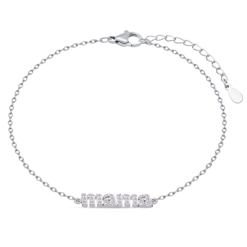 Finom karkötő „mama” felirattal és áttetsző cirkónia kövekkel díszítve. Állítható hossz a kényelmes viseletért. Stílusos és személyes ékszer, ideális ajándék minden édesanyának.