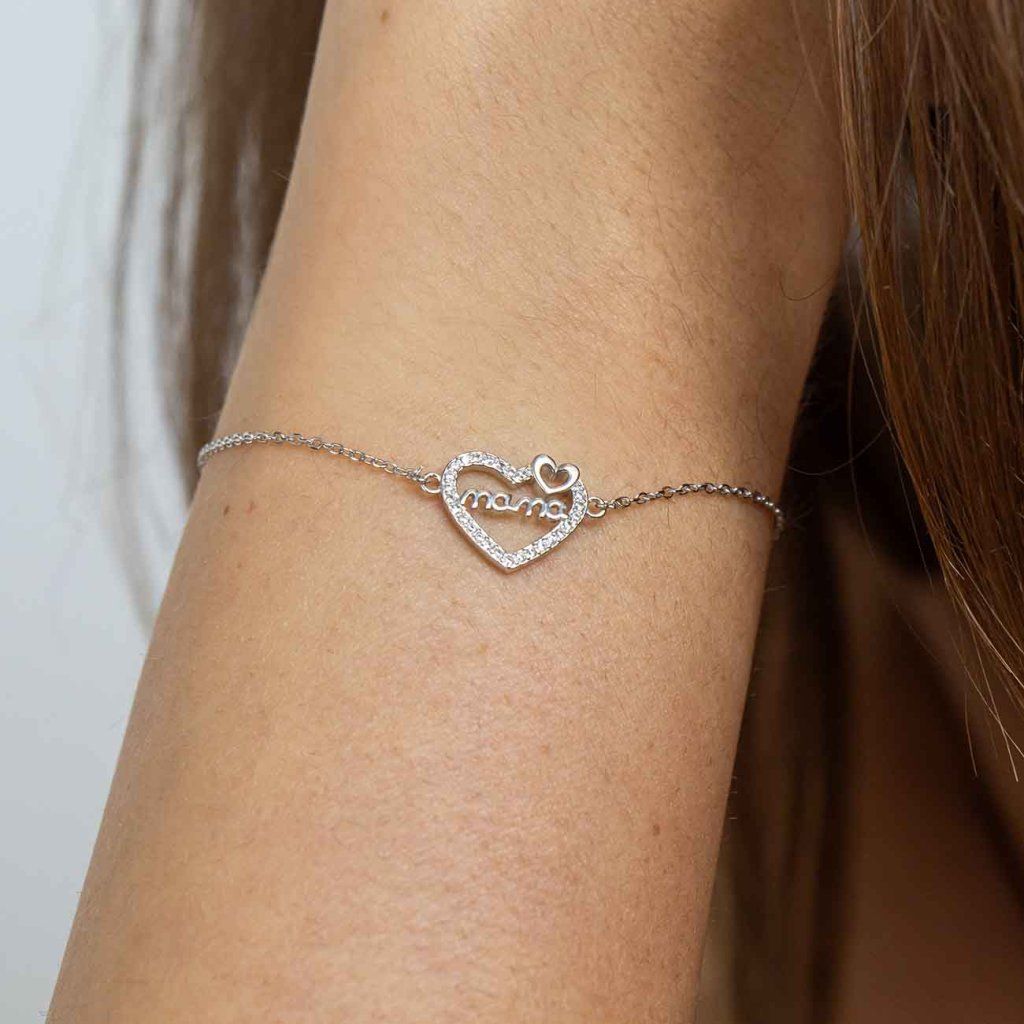 Finom karkötő szív alakú medállal, "mama" felirattal és apró, áttetsző cirkónia kövekkel díszítve. Gyönyörű és értelmes ékszer, ideális ajándék minden édesanyának.