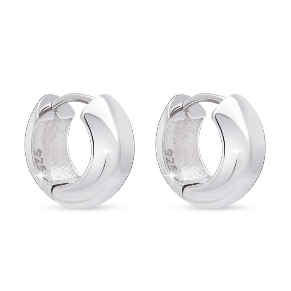 Modern és feltűnő – ezek a masszívabb, Ag 925/1000 ezüstből készült, sima és fényes felületű karikák ideális kiegészítői az önbizalommal teli stílusnak. A kövek nélküli minimalista design a tiszta eleganciára és az univerzális viselhetőségre épít. Remekül kombinálható más ékszerekkel, de önmagában is egy kifejező eleme az öltözéknek.