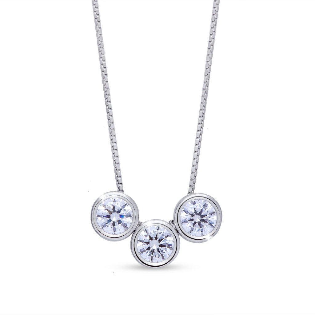 Finom ezüst nyaklánc három precízen csiszolt moissanittal, amelyek elbűvölnek tisztaságukkal és intenzív ragyogásukkal. A minimalista design a modern kivitelezésben kiemeli az egyéni stílust – akár önmagában viseled, akár rétegzett styling részeként.