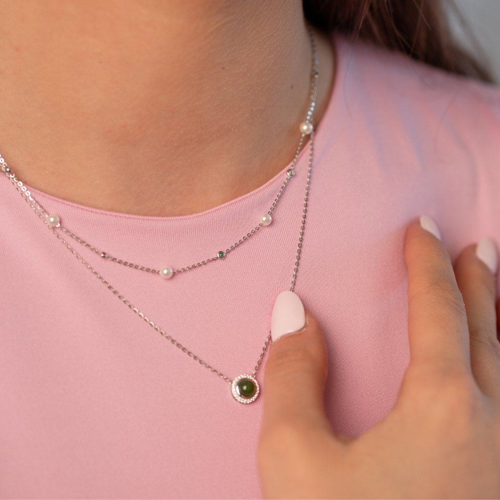 Ezüst nyaklánc hetián jádeittal és cirkóniával 2419