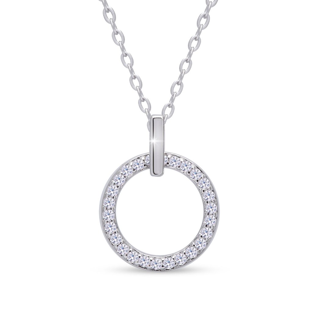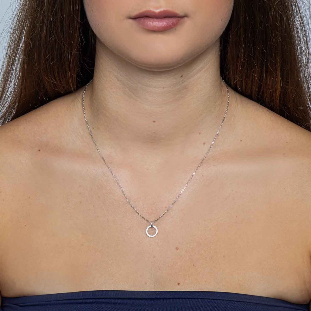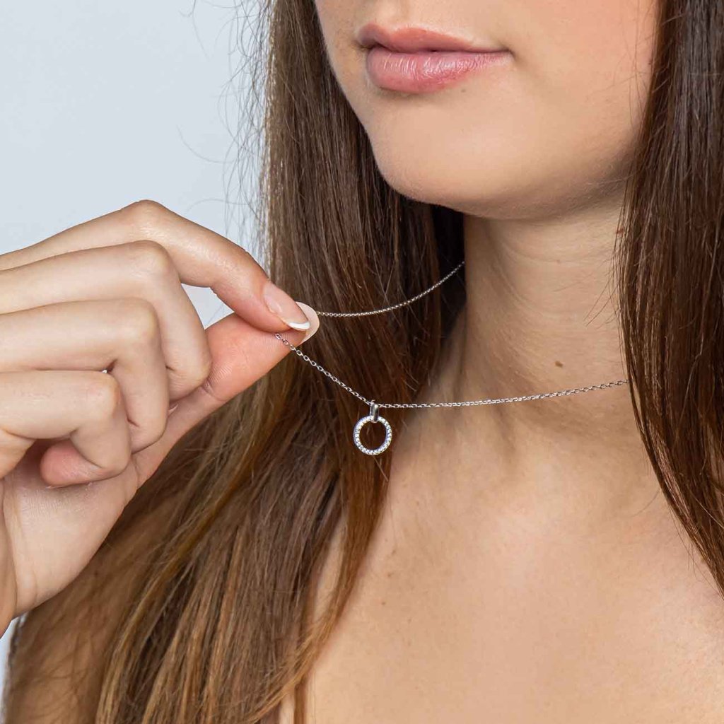 Minimalizmus a tökéletes formában – ez az ezüst nyaklánc finom, kör alakú, tiszta cirkóniákkal díszített medállal időtlen eleganciát kölcsönöz minden napra. A csillogó kör a végtelenséget, az egységet és a harmóniát szimbolizálja – ideális ajándék jelentéssel, vagy diszkrét kiegészítő bármilyen öltözékhez.