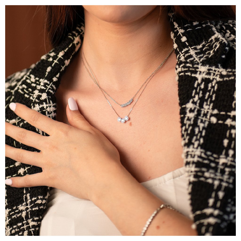 A cirkóniák precízen vannak beillesztve, hogy visszaverjék a fényt és finom csillogást hozzanak létre, amely kiemeli minden dekoltázs szépségét. Kiválóan illik formális és hétköznapi öltözetekhez is.