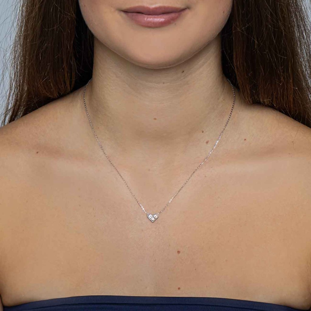 Ez az elegáns, 925/1000 tisztaságú ezüst nyaklánc romantikus, szív alakú medáljával hódít, melyet három tiszta cirkónia díszít. A minimalista design a finom csillogással kombinálva olyan ékszert alkot, amely egyszerre hat gyengéden és ízlésesen.