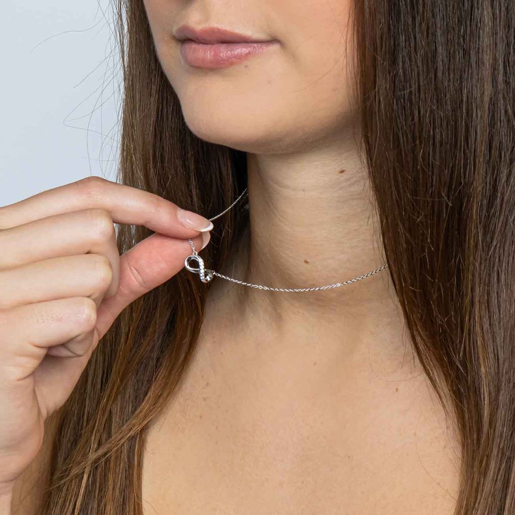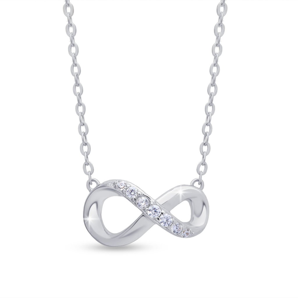 Elegáns lánc minőségi 925/1000 ezüstből készült egy végtelen alakú medált visel, amelyet csillogó, tiszta cirkóniák díszítenek. A végtelen szimbólum az örökkévalóságot, az egyensúlyt és a soha véget nem érő szerelmet jelképezi – ezért ez az ékszer népszerű ajándék a partnernek, édesanyának vagy egy közeli barátnak.